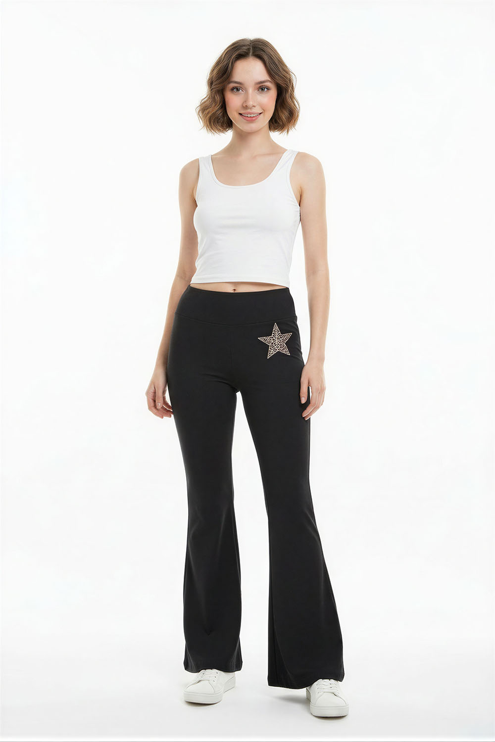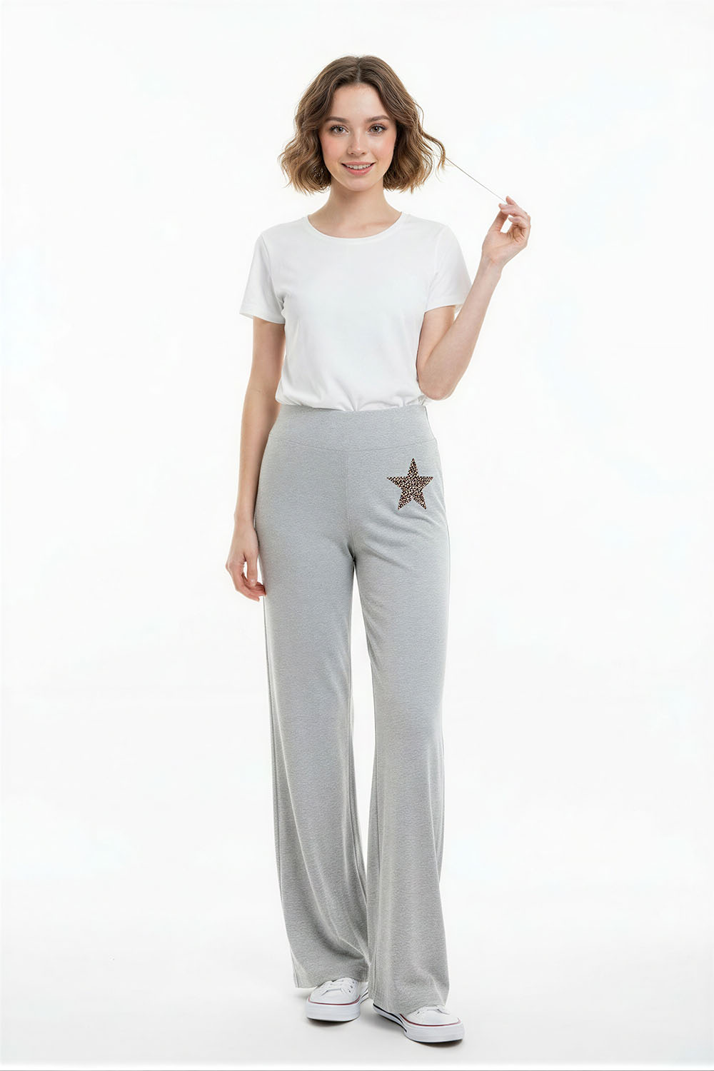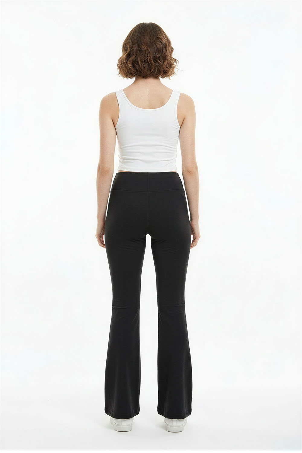 Pantalón de tiro alto con corte amplio que brinda comodidad al movimiento, pretina ancha que ofrece ajuste firme al abdomen, diseño sin cierre visible que aporta acabado limpio, confección en tejido suave que favorece el uso prolongado, caída recta que estiliza la silueta