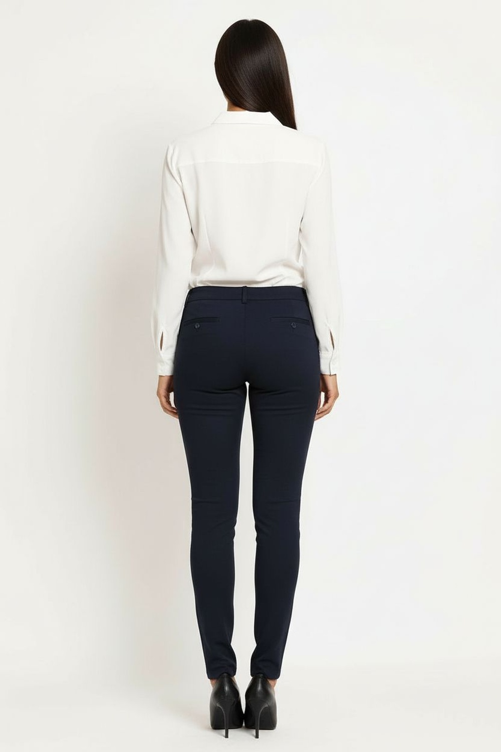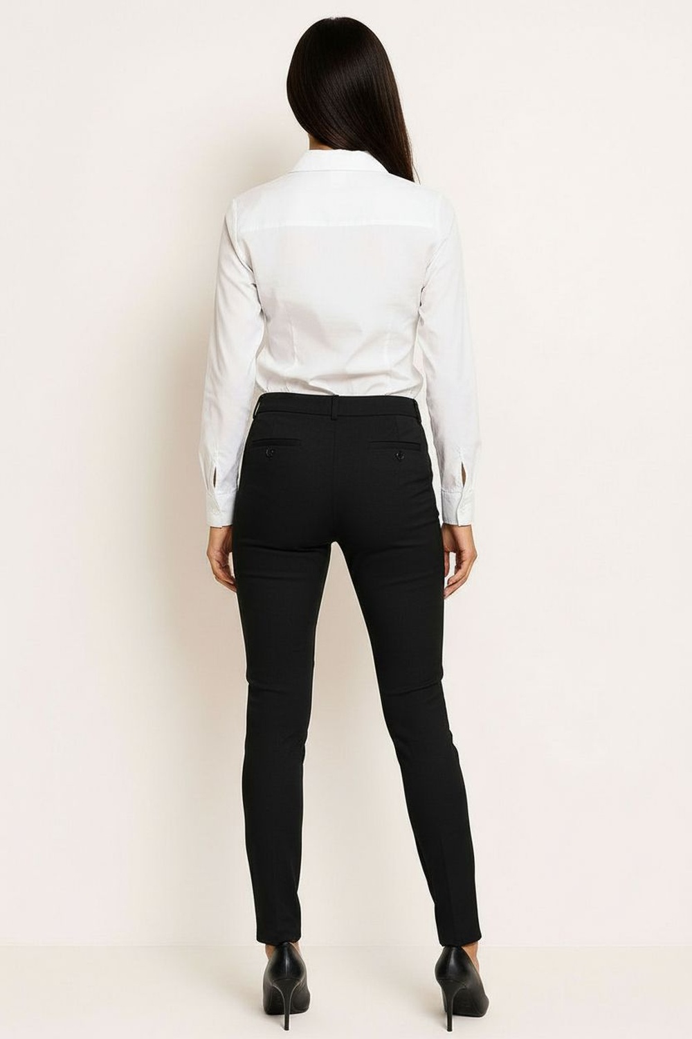 Pantalón de corte recto con pretina definida que brinda ajuste seguro, tiro medio que aporta comodidad durante el uso, bolsas traseras funcionales integradas al diseño, pierna larga con caída limpia que estiliza la silueta, confección en tejido resistente con tacto suave