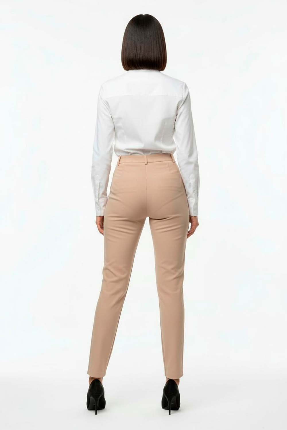 Pantalón de tiro medio con pretina estructurada que brinda ajuste seguro a la cintura, cierre frontal con botón funcional para mejor sujeción, corte recto que mantiene una línea limpia, largo completo que estiliza la pierna, confección en tejido firme de caída uniforme ideal para uso prolongado