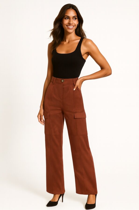 Pantalón de pretina dividida con doble trabilla que ofrece ajuste firme y mayor soporte, cierre frontal con botón metálico y cremallera oculta que aportan funcionalidad, bolsillos laterales discretos que brindan practicidad, corte recto con planchado marcado al frente que estiliza la silueta y alarga visualmente las piernas, confección en tela estructurada que conserva la forma y permite comodidad durante el uso diario o en ocasiones formales