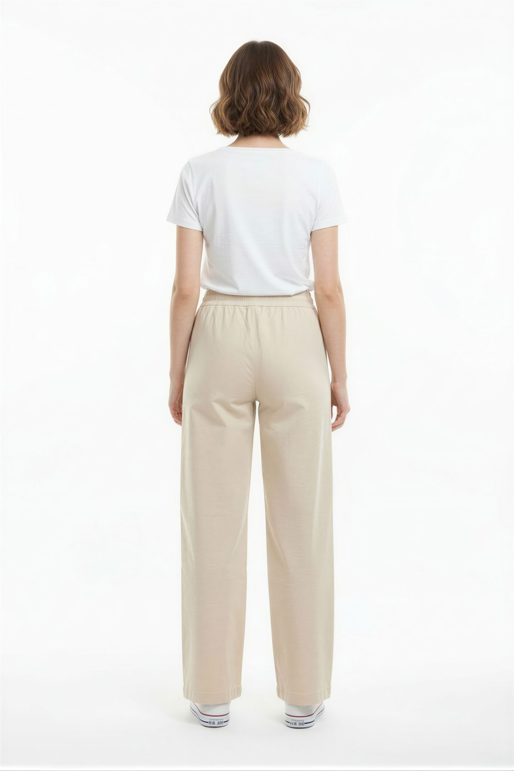 Pantalón de corte suelto confeccionado en tejido ligero, cintura con smock elástico que asegura ajuste práctico, tiro medio que brinda comodidad durante el uso, pierna recta con caída natural, terminado limpio que conserva la estructura de la prenda