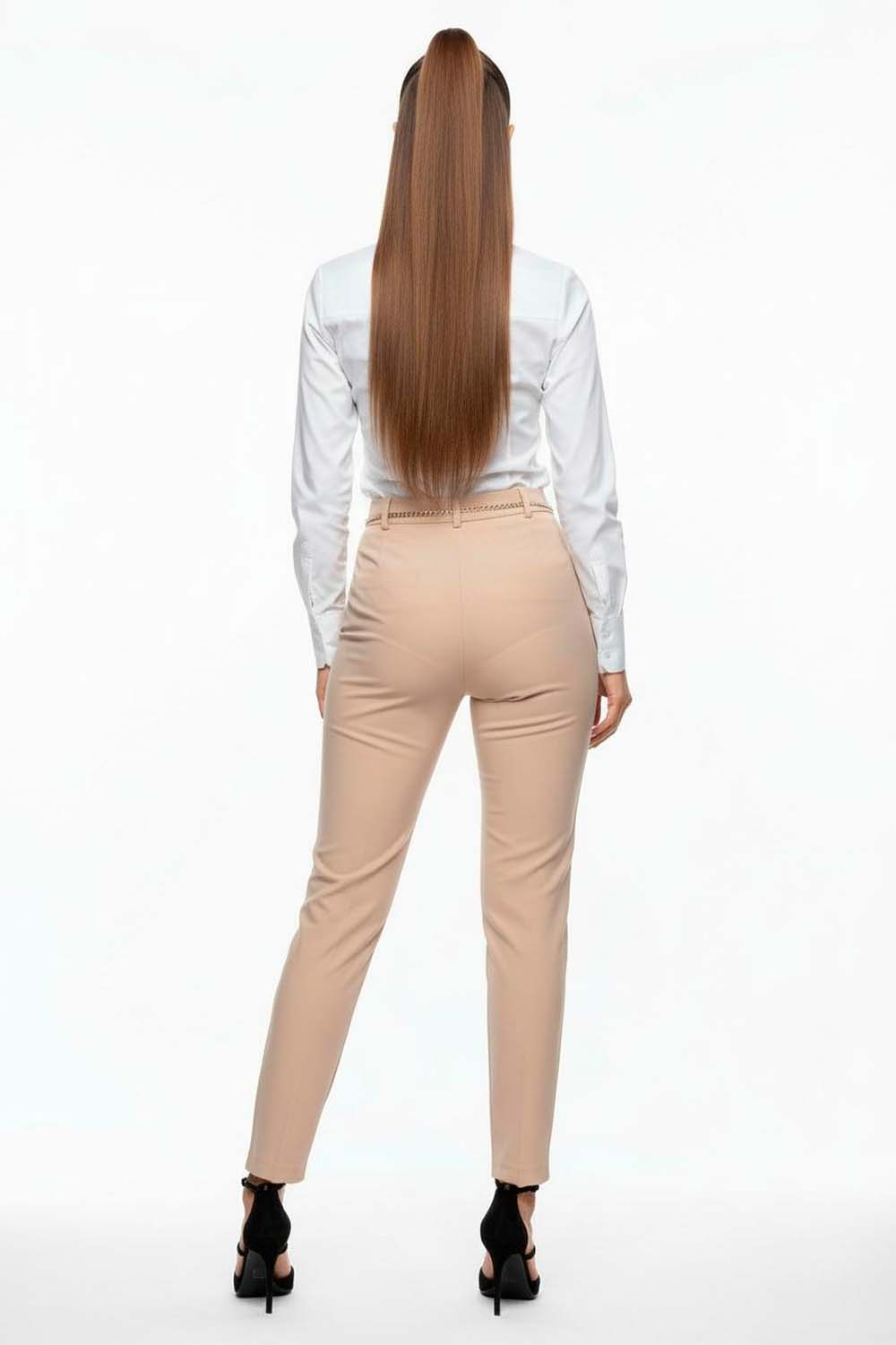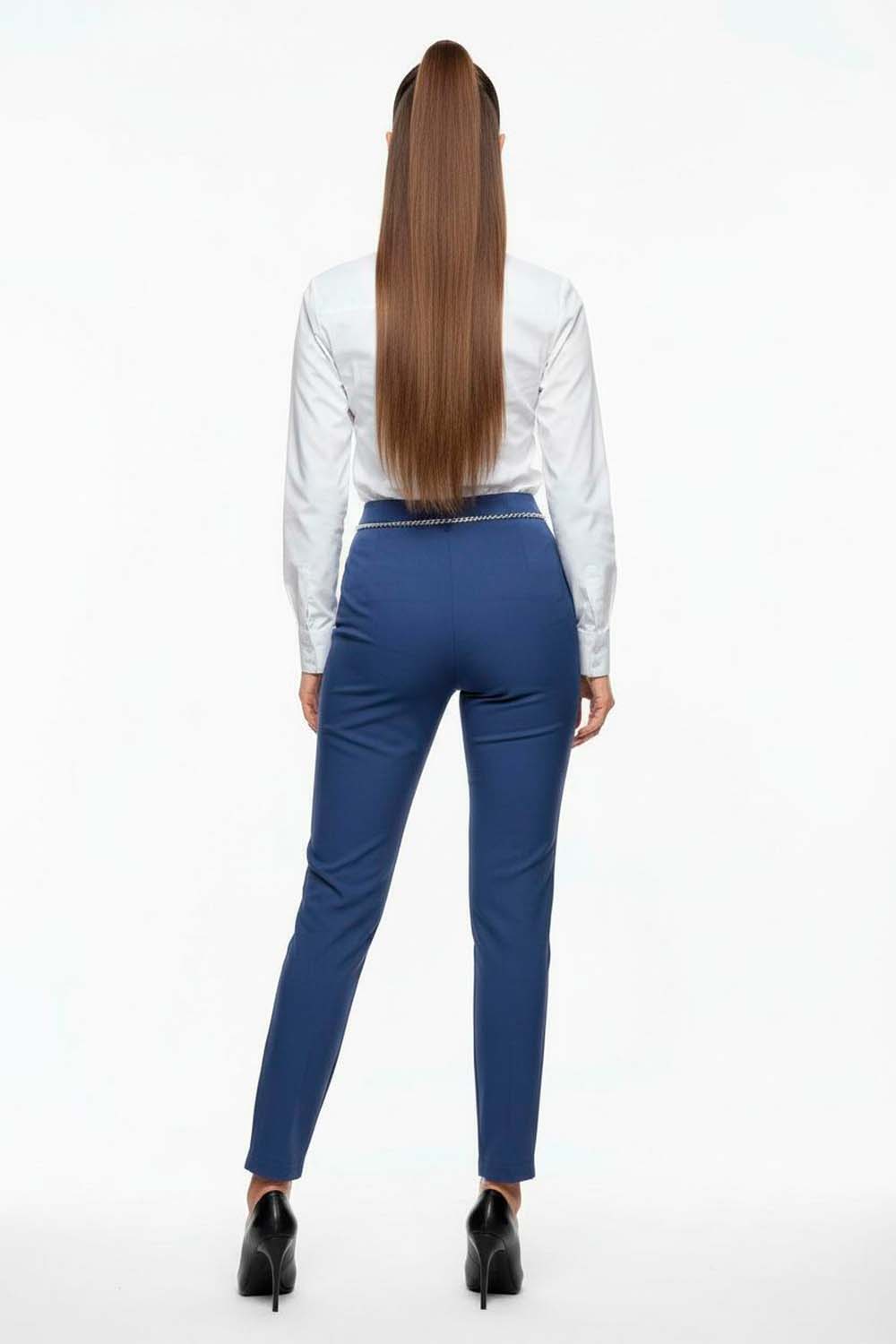 Pantalón de corte semi ajustado con pretina ancha y cinturón integrado que realza la cintura aportando estructura al diseño, confección en tejido suave con elasticidad que brinda confort y libertad de movimiento, cierre oculto que mantiene un acabado limpio y moderno, largo clásico que estiliza las piernas y permite crear looks versátiles para distintas ocasiones
