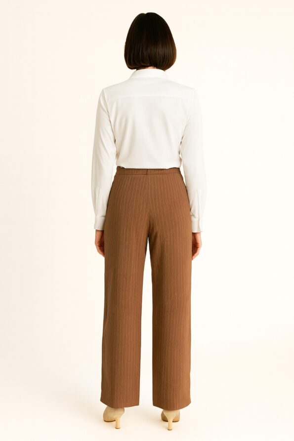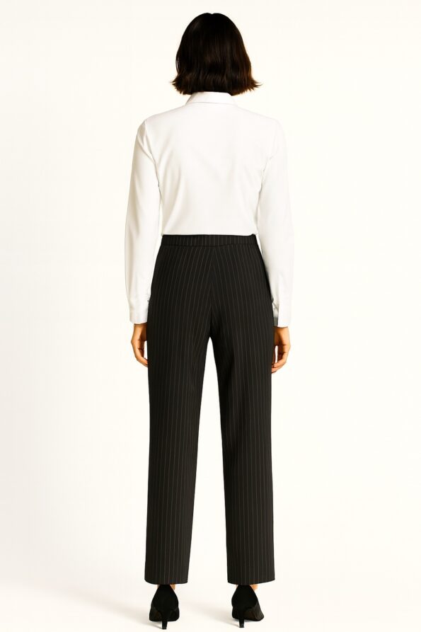 Pantalón con pretina trasera de resorte que brinda ajuste flexible y comodidad, cierre frontal con botón y cremallera oculta que ofrecen practicidad, bolsillos funcionales al frente que añaden utilidad, corte recto con planchado marcado que estiliza la figura, confección en tela estructurada que mantiene la forma y resulta ideal para looks de oficina o combinaciones elegantes de diario