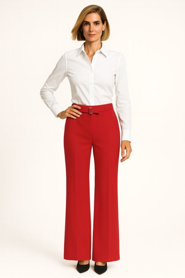 Pantalón de corte semi ajustado con pretina ancha y cinturón integrado que realza la cintura aportando estructura al diseño, confección en tejido suave con elasticidad que brinda confort y libertad de movimiento, cierre oculto que mantiene un acabado limpio y moderno, largo clásico que estiliza las piernas y permite crear looks versátiles para distintas ocasiones