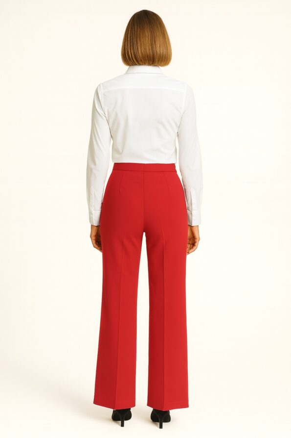 Pantalón de pretina dividida con doble trabilla que ofrece ajuste firme y mayor soporte, cierre frontal con botón metálico y cremallera oculta que aportan funcionalidad, bolsillos laterales discretos que brindan practicidad, corte recto con planchado marcado al frente que estiliza la silueta y alarga visualmente las piernas, confección en tela estructurada que conserva la forma y permite comodidad durante el uso diario o en ocasiones formales