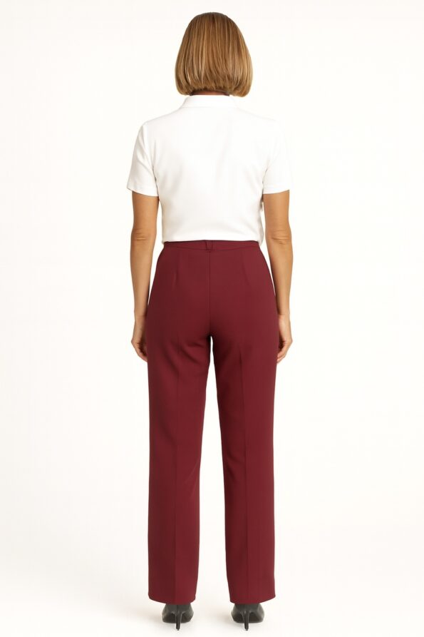 Pantalón de pretina ancha con pasadores reforzados que aseguran un mejor ajuste, cierre frontal con botón metálico y cremallera oculta que aportan practicidad, bolsillos discretos laterales que ofrecen funcionalidad, corte recto con planchado permanente al frente que estiliza la figura y alarga visualmente las piernas, confección en tela estructurada que mantiene la forma y aporta comodidad para el día a día o eventos semi formales