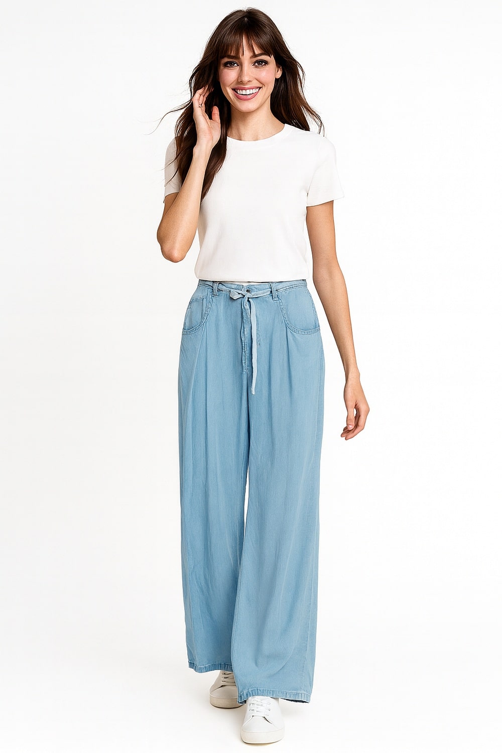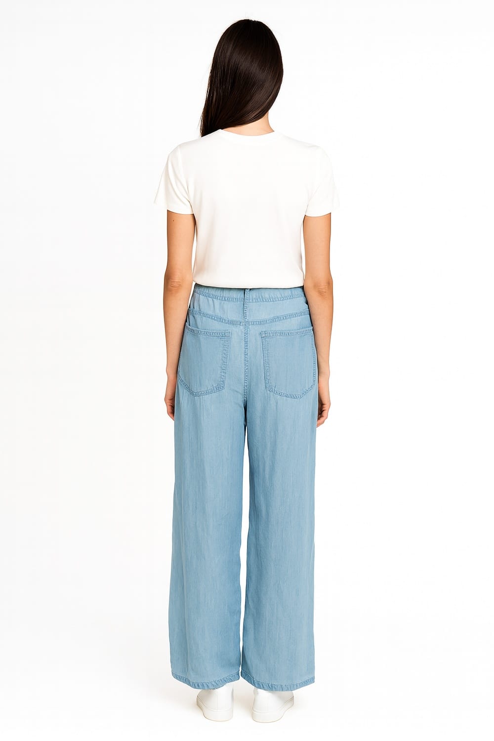 Pantalón de tiro medio con corte amplio que brinda libertad de movimiento, pretina con jareta ajustable que permite un ajuste personalizado, confeccionado en tejido suave con caída ligera, diseño versátil ideal para un estilo relajado y cómodo