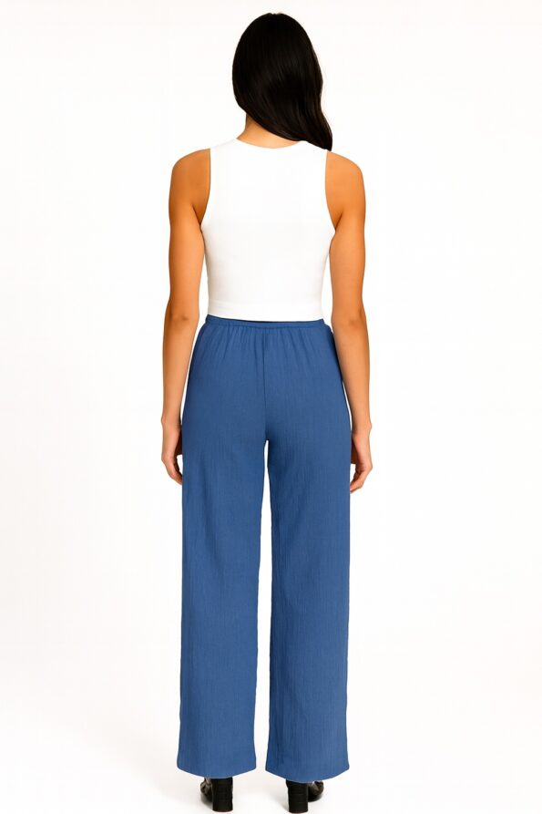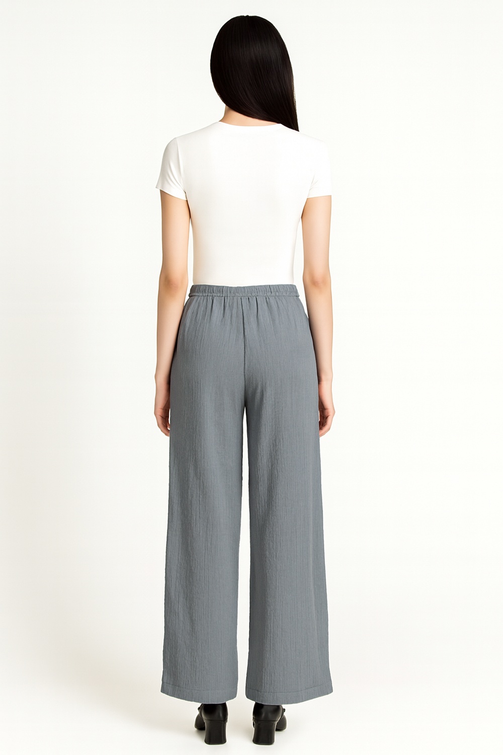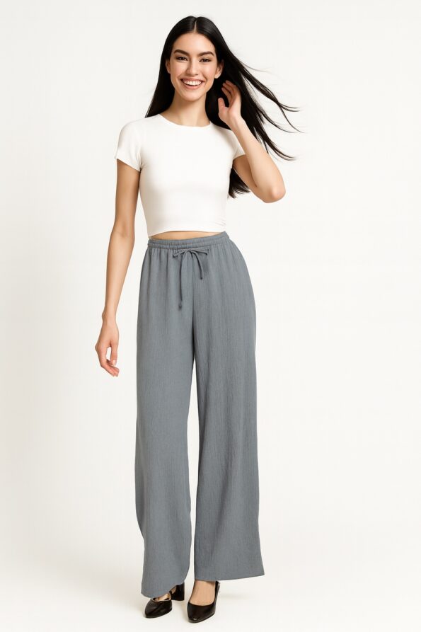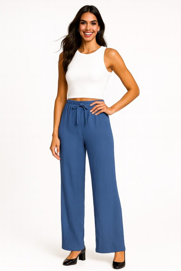Pantalón amplio casual tiro medio con pretina ancha de elástico con cordón de amarre y bolsas laterales