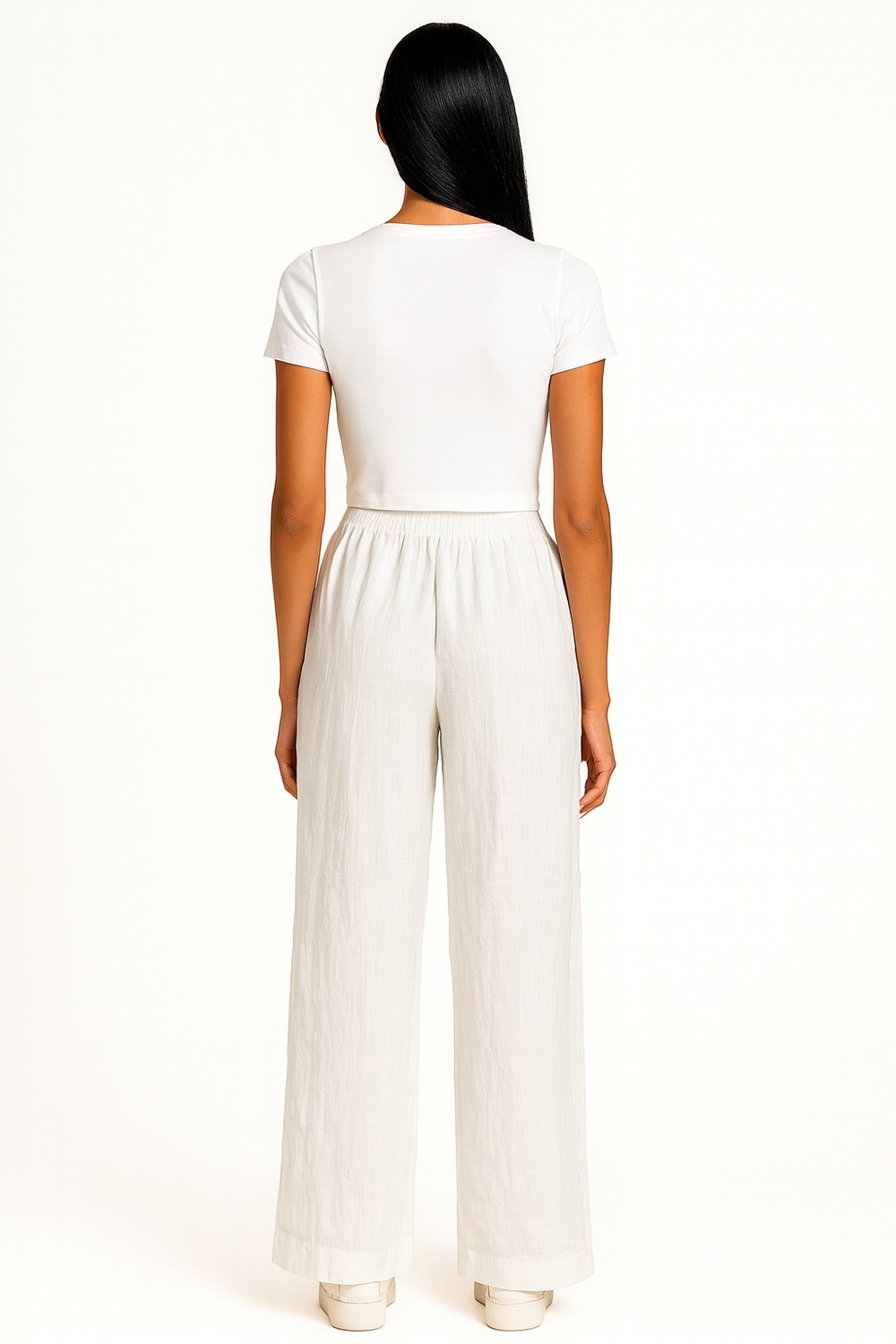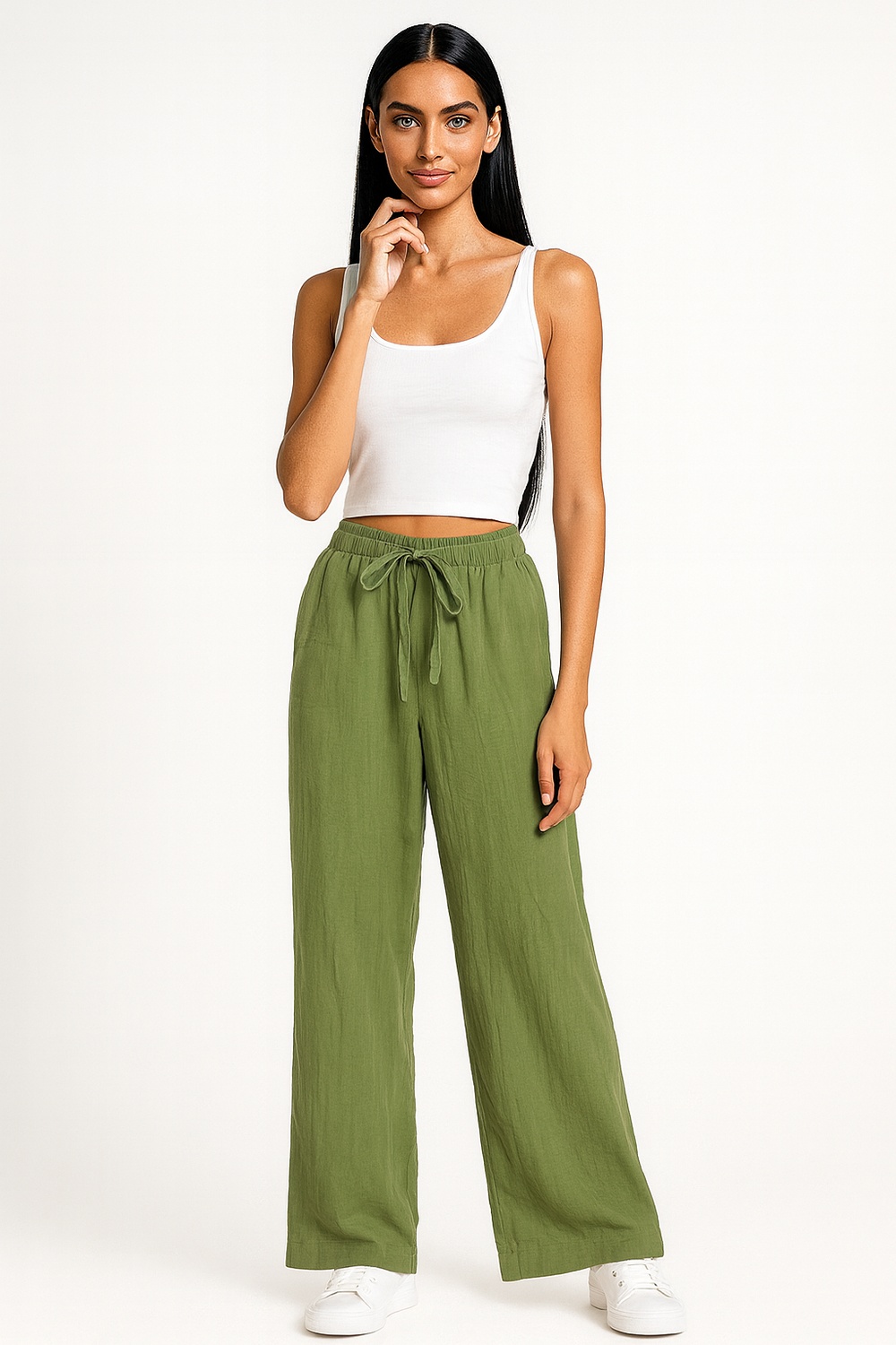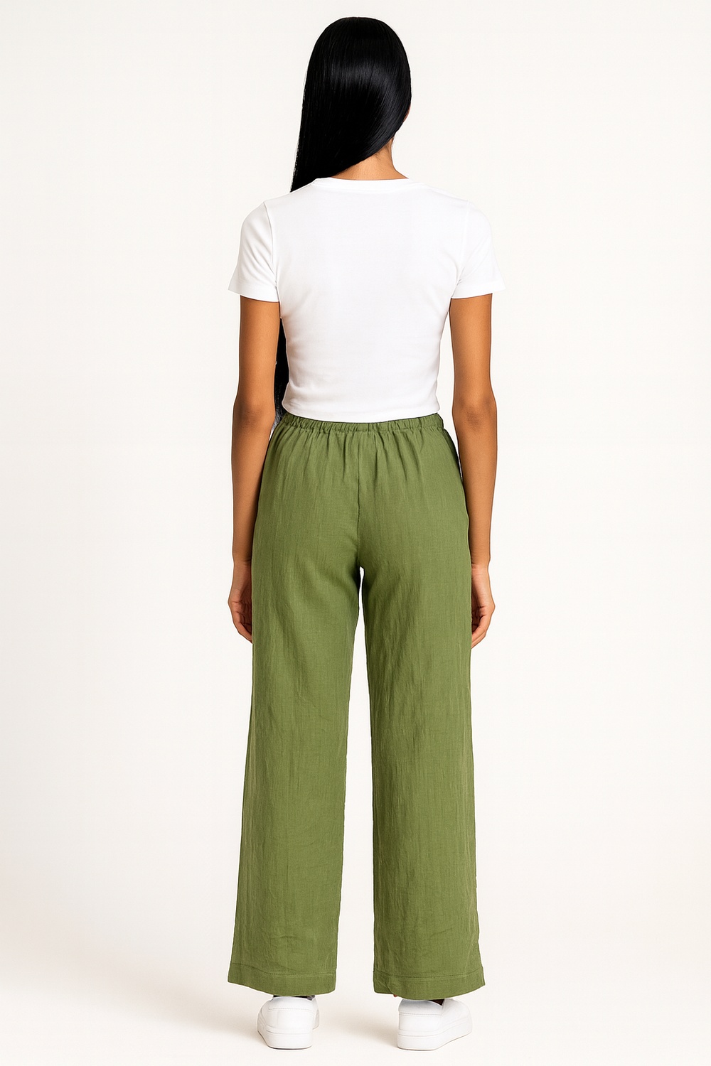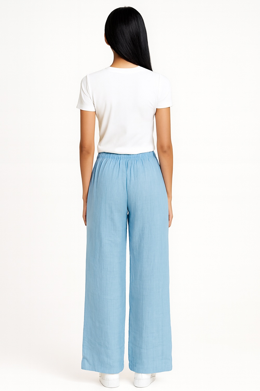 Pantalón largo de corte recto, elaborado en tejido tipo manta de textura ligera, pretina elástica con jareta ajustable, silueta amplia que brinda comodidad y frescura durante el uso