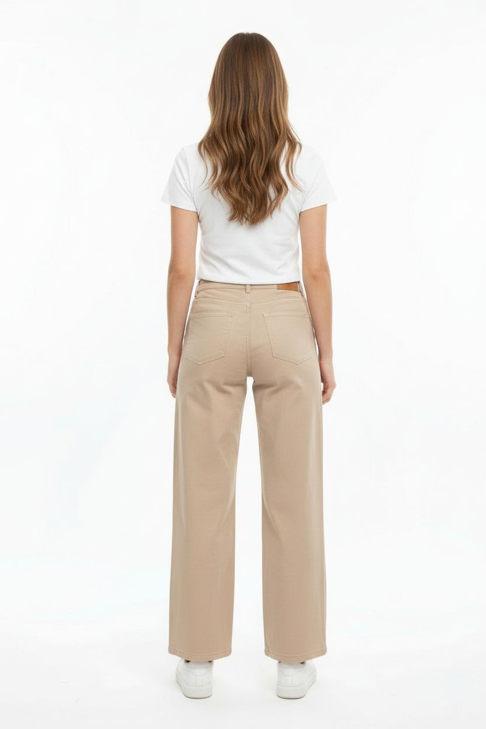 Pantalón wide leg de gabardina rígida con tiro medio y corte amplio en pierna que brinda caída estructurada, pretina con botón metálico y cierre frontal para ajuste seguro, bolsillos delanteros funcionales y bolsas posteriores de parche que aportan practicidad, confección firme que mantiene la forma y estiliza la silueta, diseño versátil para uso diario y ocasiones casuales