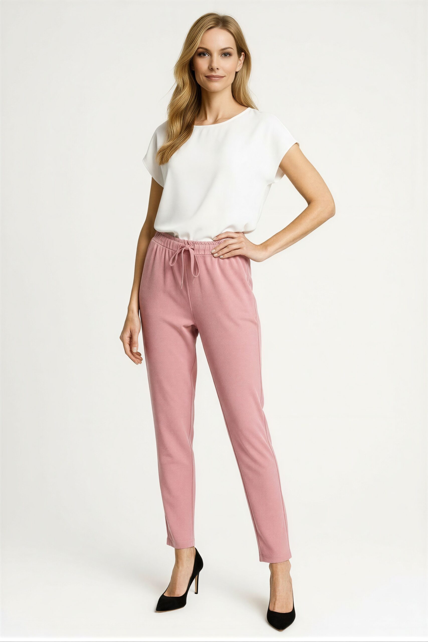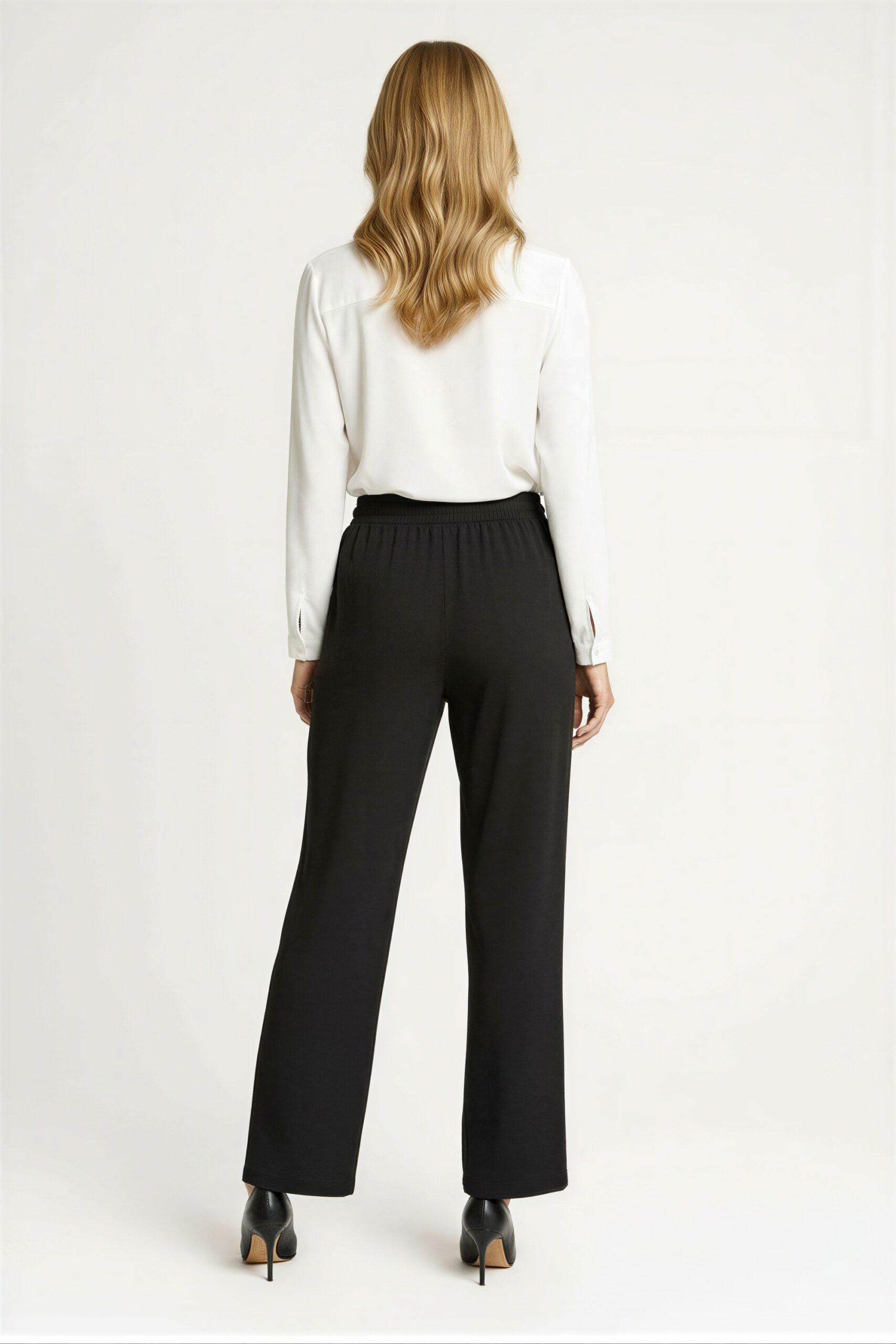 Pantalón de tiro medio con pretina elástica jareta ajustable bolsillos laterales corte recto caída fluida y estructura cómoda