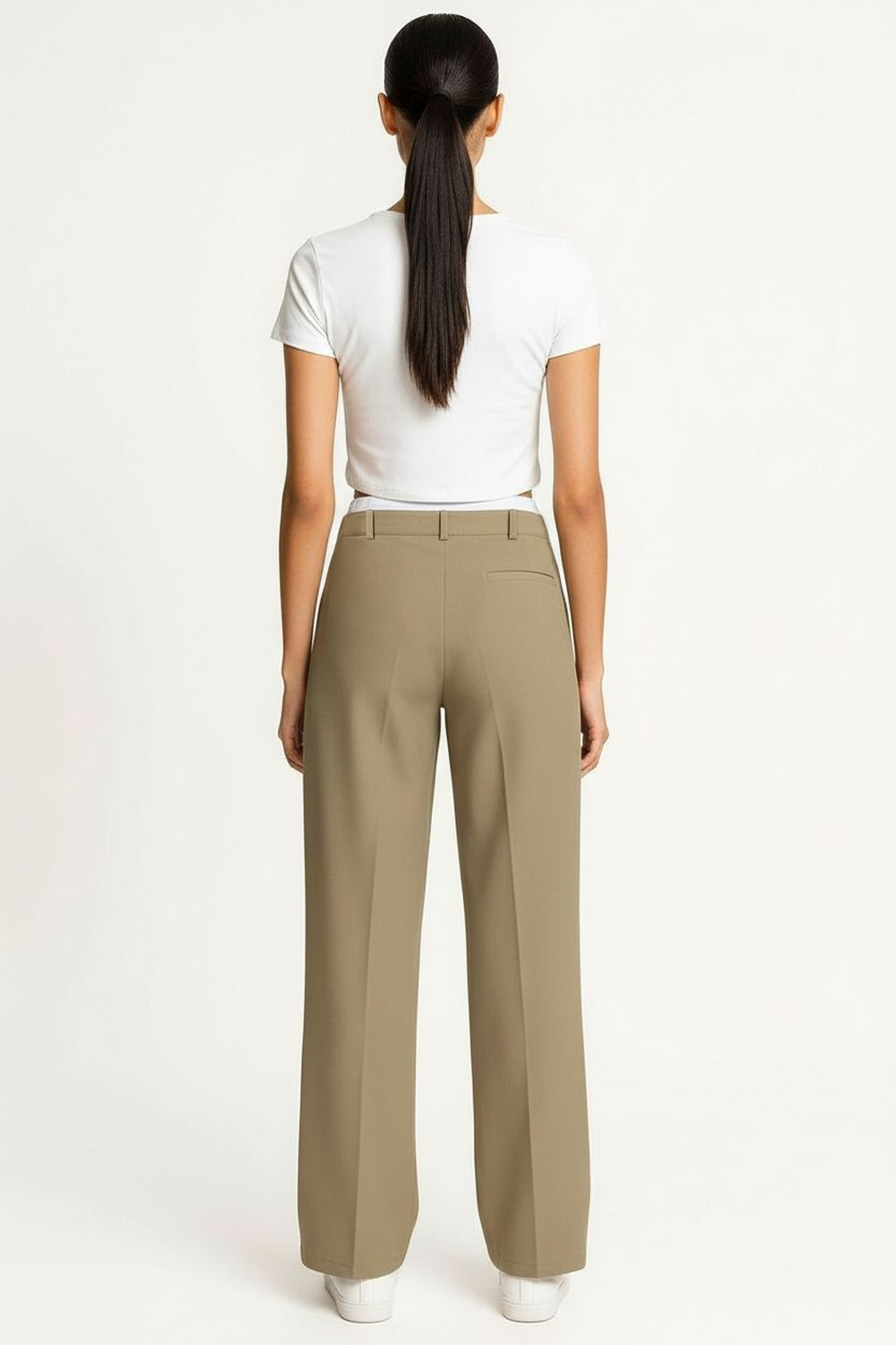 Pantalón de tiro alto con pretina estructurada que brinda soporte y ajuste cómodo, corte recto en pierna que estiliza la silueta, cierre frontal oculto para apariencia limpia, largo al tobillo que facilita su uso diario, confección en tejido resistente de tacto suave