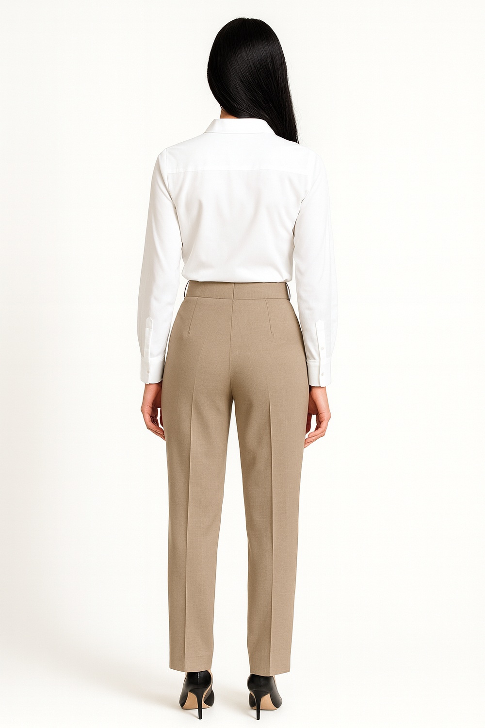 Pantalón con pretina trasera de resorte que brinda ajuste flexible y comodidad, cierre frontal con botón y cremallera oculta que ofrecen practicidad, bolsillos funcionales al frente que añaden utilidad, corte recto con planchado marcado que estiliza la figura, confección en tela estructurada que mantiene la forma y resulta ideal para looks de oficina o combinaciones elegantes de diario
