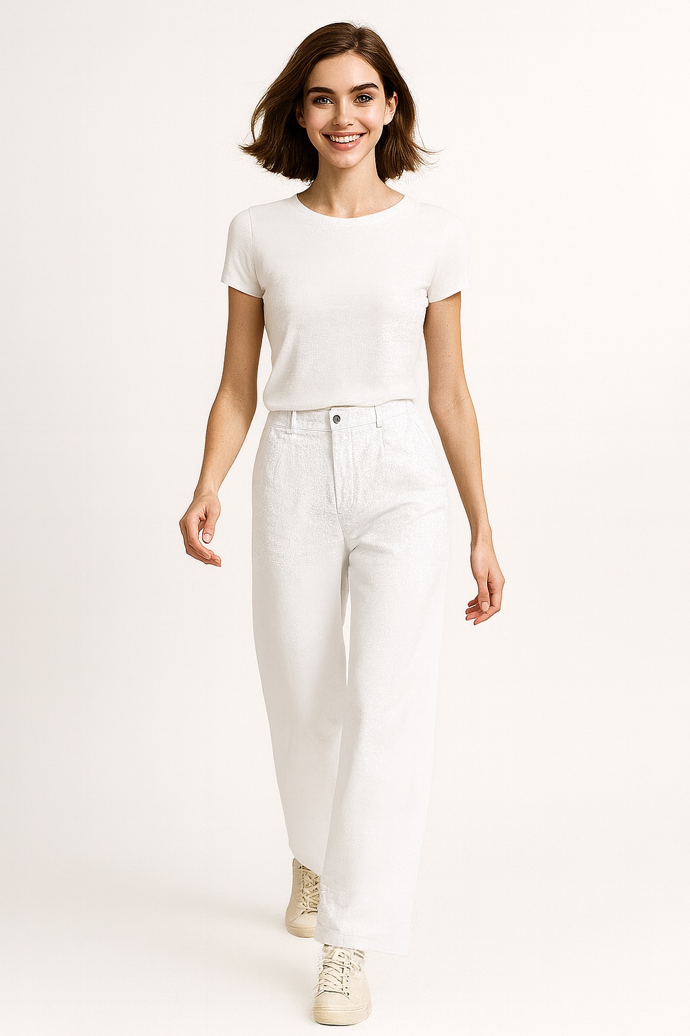 Pantalón de tiro alto con corte suelto y caída recta, confección en tejido ligero que permite movilidad, pretina con resorte y jareta ajustable que brinda ajuste cómodo, largo completo que estiliza la silueta, terminaciones limpias en bastilla para un acabado prolijo