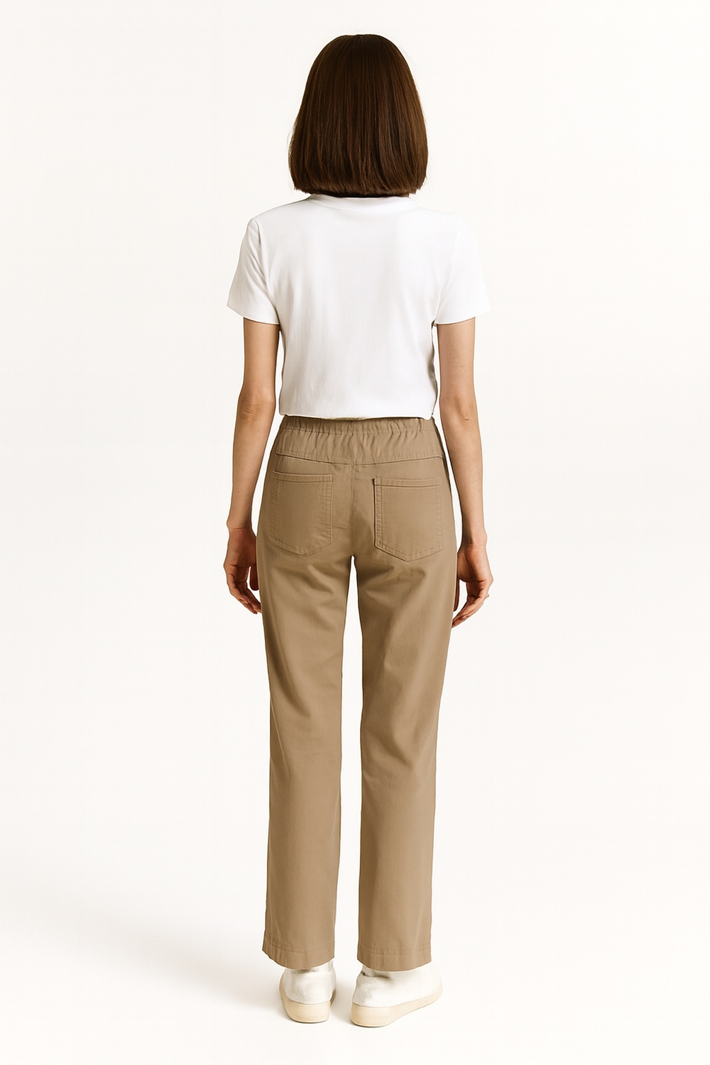 Pantalón de tiro medio con pretina elástica ajustable que brinda comodidad, bolsillos laterales funcionales que aportan practicidad, pernera recta con caída relajada, confección en tejido rib que ofrece suavidad y flexibilidad, largo regular que favorece el uso diario