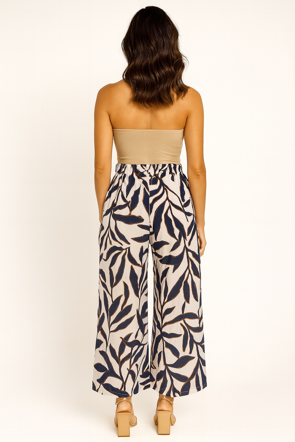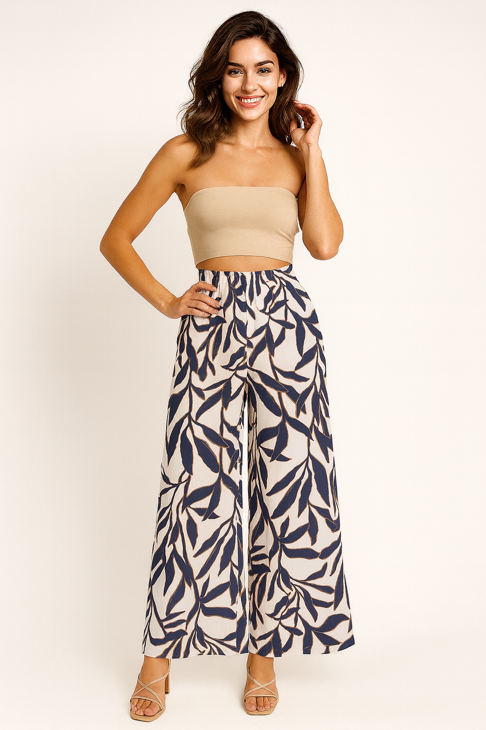 Pantalón de tiro medio con pretina elástica que asegura ajuste práctico, corte amplio que proporciona comodidad continua, diseño de pierna recta con caída suave, largo regular con terminación limpia, confección en tejido flexible de uso diario