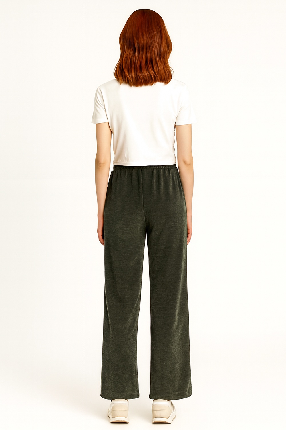 Pantalón de corte recto con pretina elástica que asegura un ajuste cómodo, jareta frontal con cordón para adaptar la cintura, caída ligera que permite libertad de movimiento, confección en tejido suave con acabado liso que brinda confort y estilo casual, ideal para un look relajado y moderno