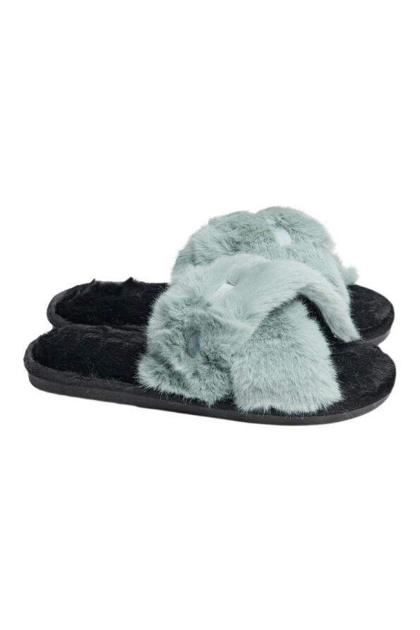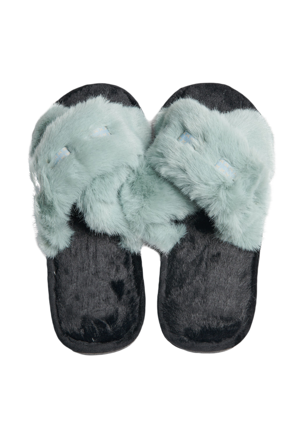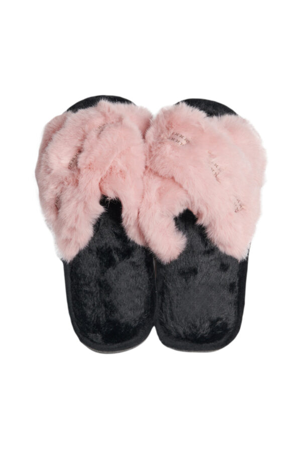 Pantufla elaborada en suave peluche combinado con diseño de tiras cruzadas que aportan textura y estilo, plantilla acolchonada que brinda comodidad en cada paso, suela ligera con acabado antideslizante que garantiza estabilidad, ideal para mantener los pies abrigados con un toque moderno dentro del hogar