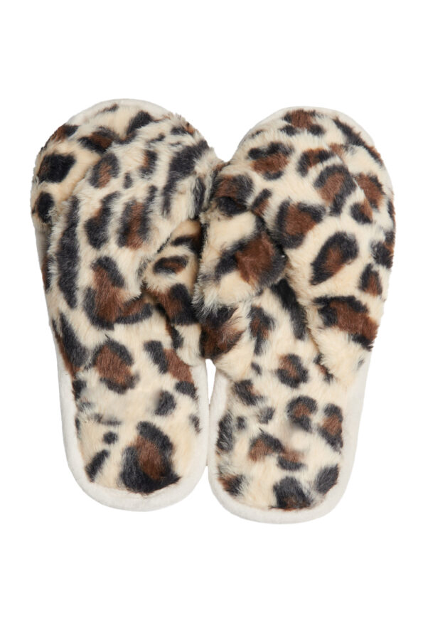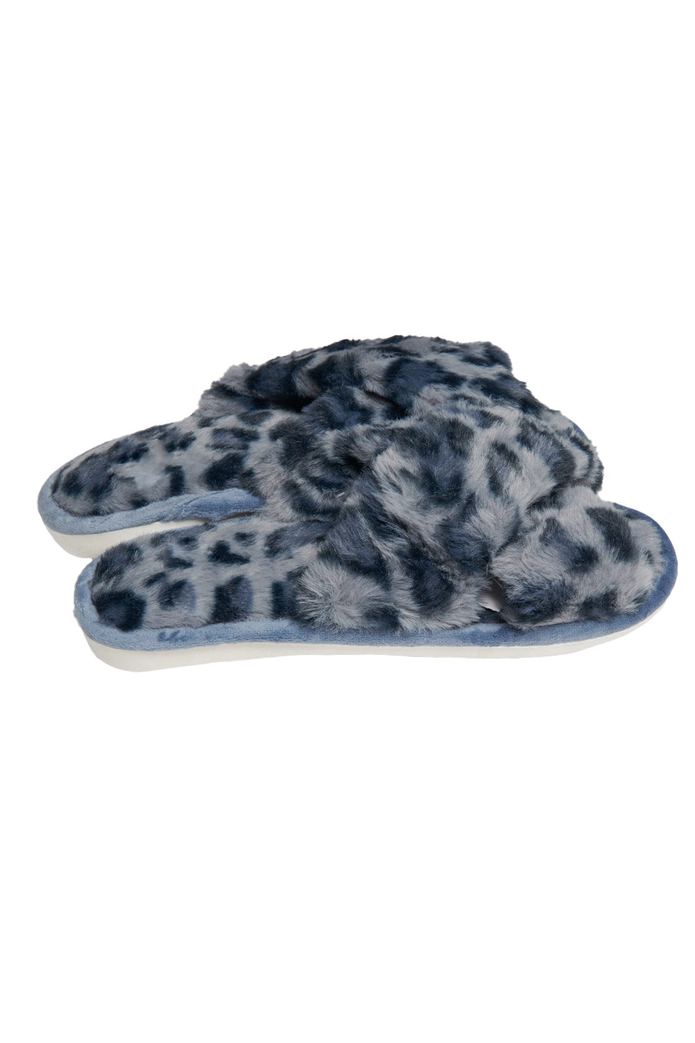 Pantufla elaborada en suave peluche combinado con diseño de tiras cruzadas que aportan textura y estilo, plantilla acolchonada que brinda comodidad en cada paso, suela ligera con acabado antideslizante que garantiza estabilidad, ideal para mantener los pies abrigados con un toque moderno dentro del hogar