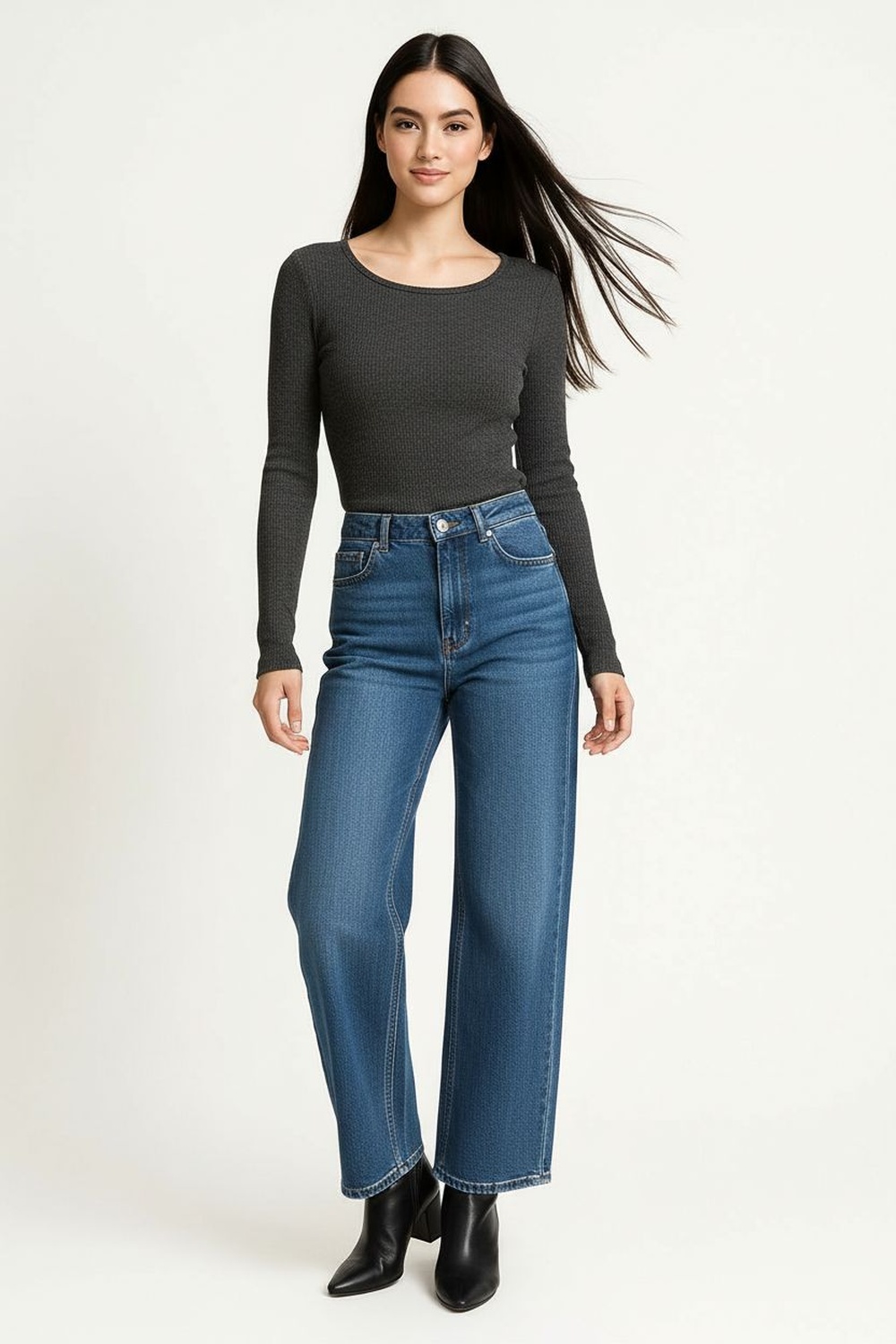Playera de manga larga con tejido suave al tacto, cuello redondo y detalle de abertura frontal en bajo, corte ajustado que realza la silueta, terminados acanalados que aportan estructura y resistencia al uso, ideal para outfits de temporada