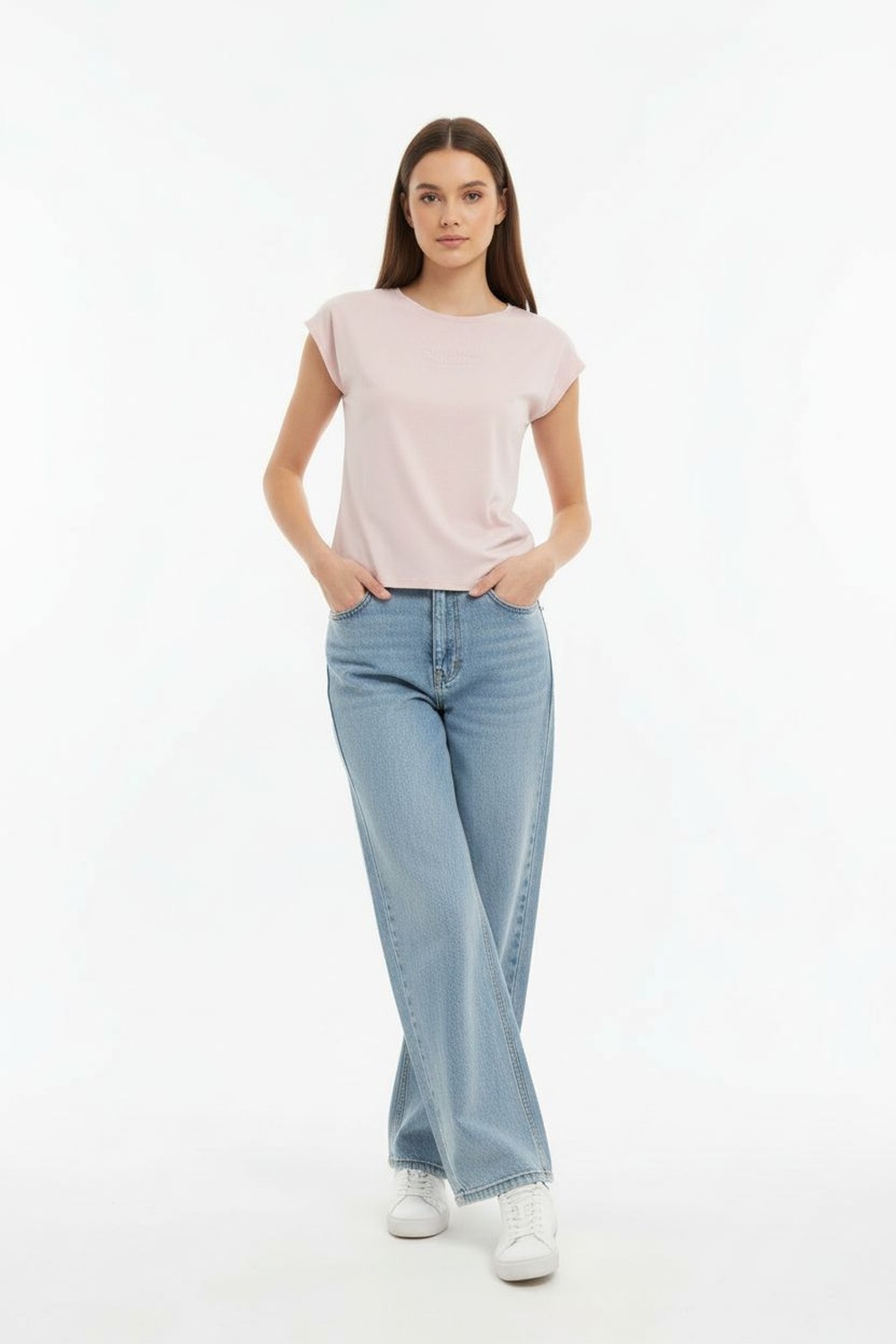 Playera de manga corta, cuello redondo, silueta ajustada, diseño de doble pieza, acabado suave al tacto, confección ligera para uso diario