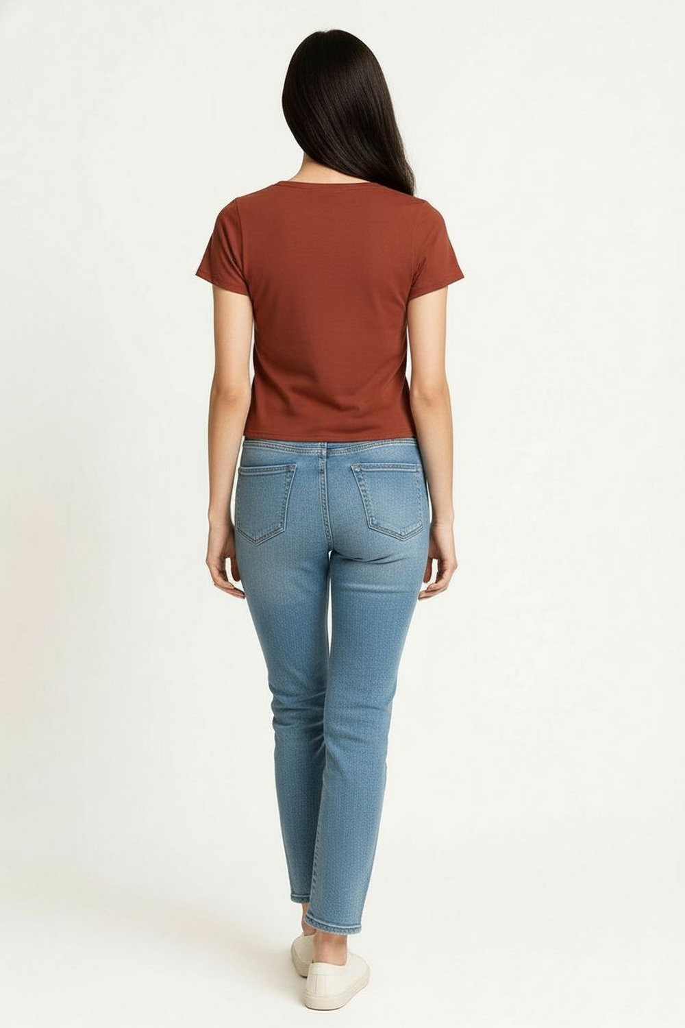 Playera de corte ajustado con bordado frontal, cuello redondo y manga corta, confeccionada en tejido acanalado suave que brinda comodidad durante todo el día, detalle de costuras discretas que aportan un acabado limpio y moderno, prenda ligera de fácil cuidado que ofrece un estilo casual y actual