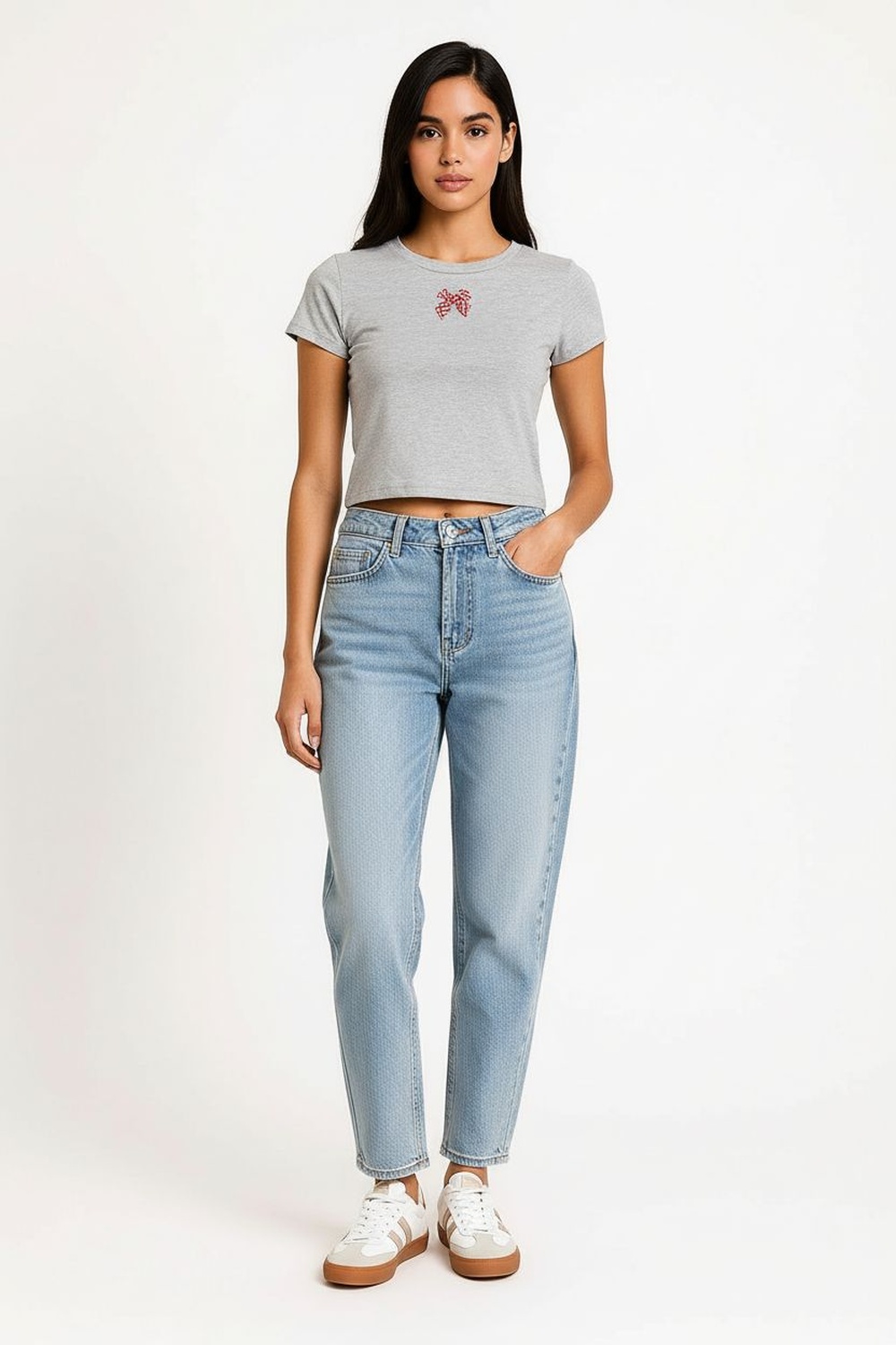 Playera confeccionada en mezcla de algodón y gasa chiffon que ofrece suavidad y ligereza, diseño de manga corta con corte recto que brinda comodidad y frescura, detalle aplicado en el cuello que aporta un toque distintivo y femenino, confección con acabados limpios que aseguran una apariencia cuidada y durabilidad en cada uso