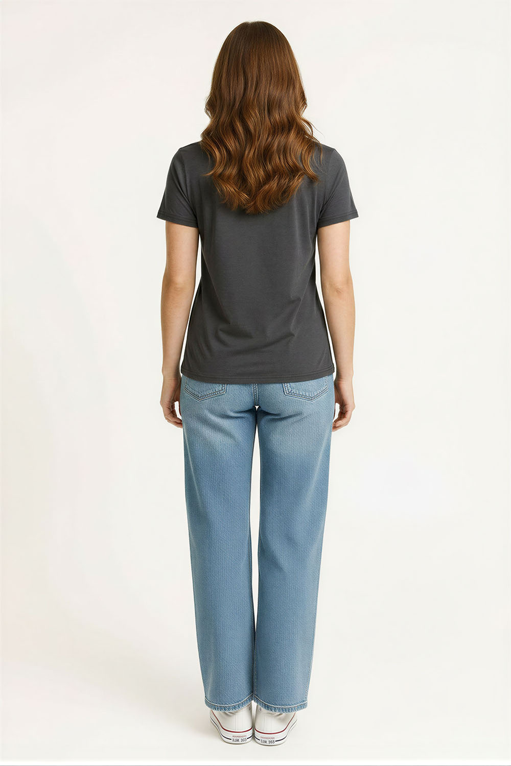 Playera con escote amplio, manga corta, corte recto, tela ligera con caída suave, confección cómoda para uso diario