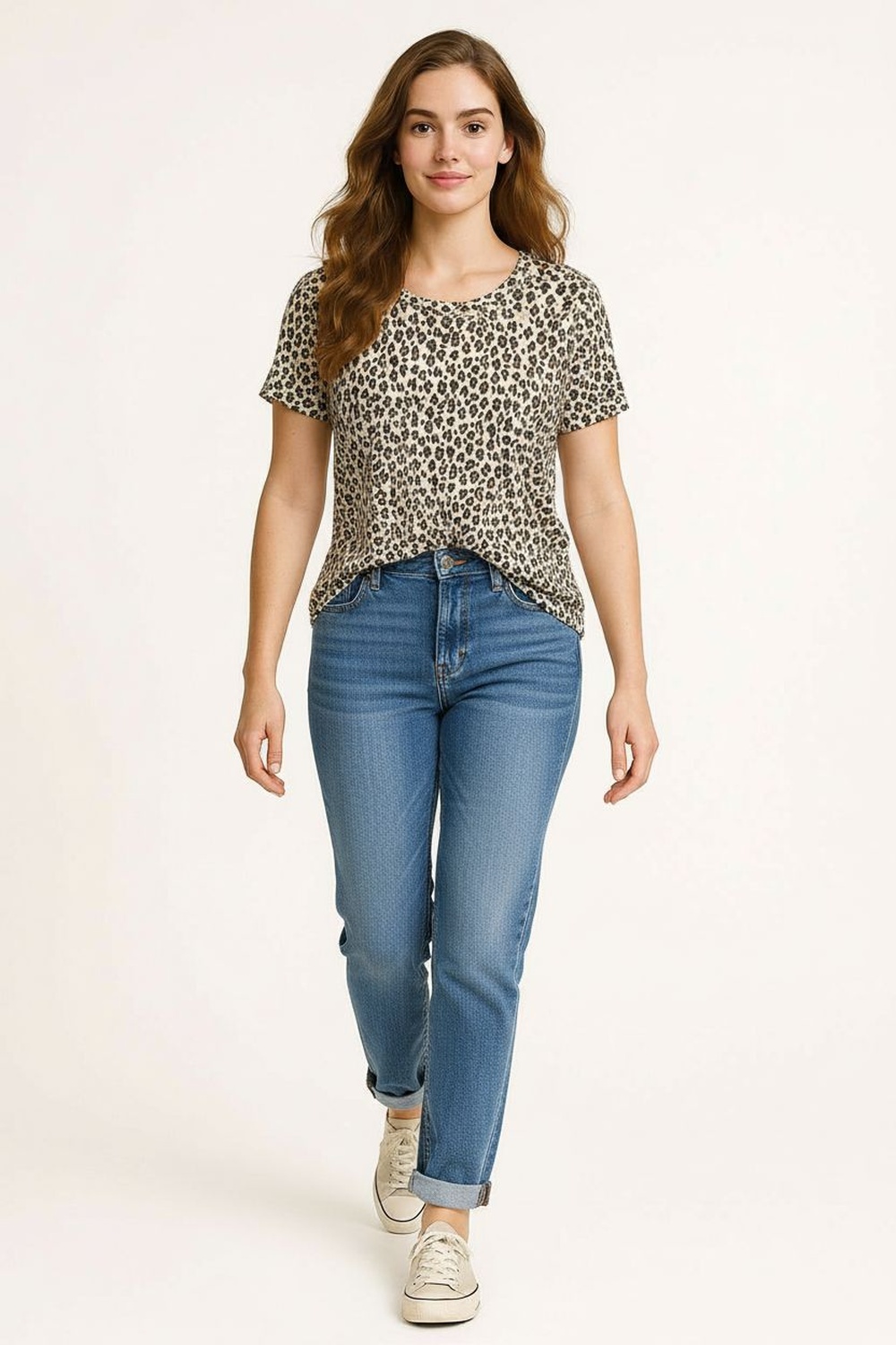 Playera de manga corta con cuello redondo y gráfico repetido en toda la prenda, silueta recta con largo clásico que aporta comodidad, confección en tejido ligero de tacto suave, terminados limpios en cuello y mangas, FIT REGULAR