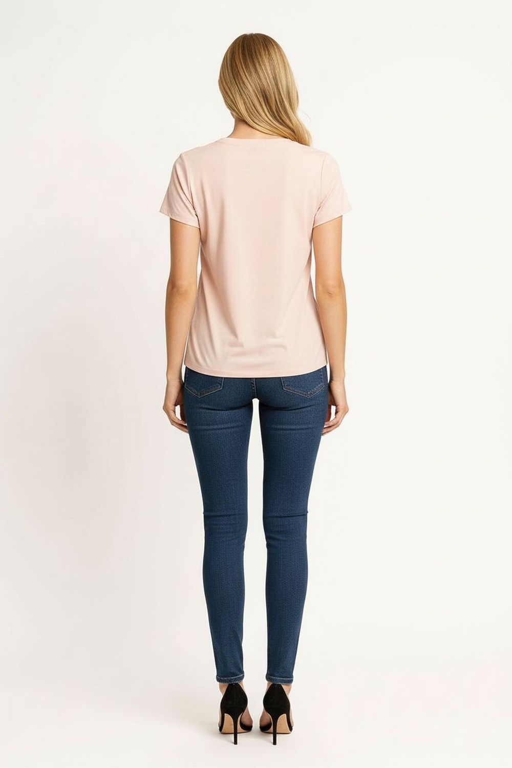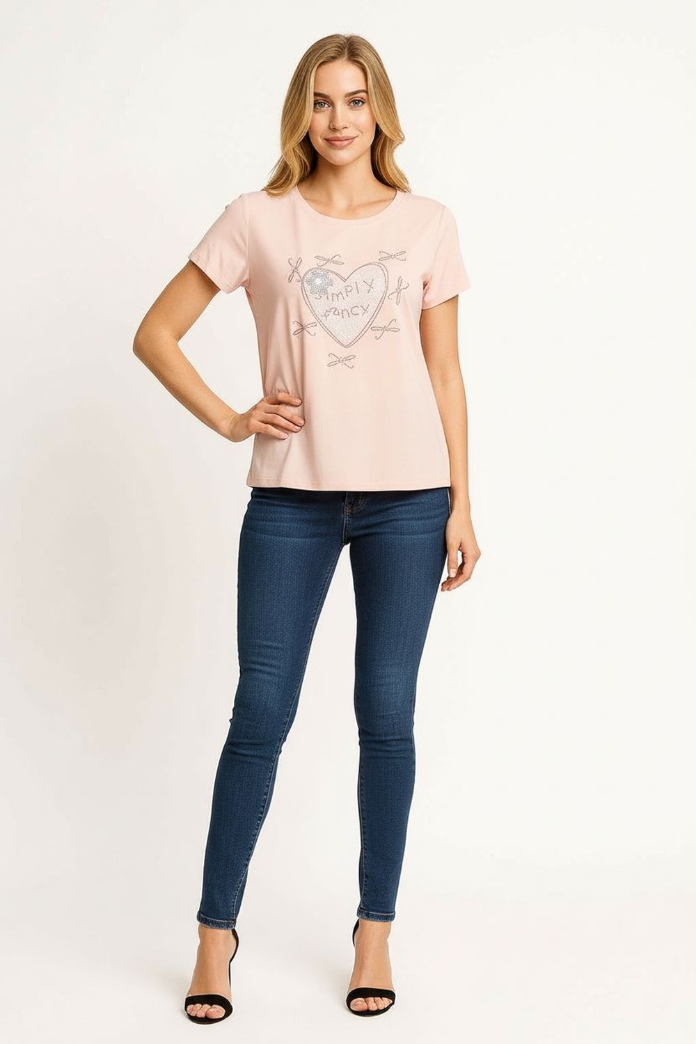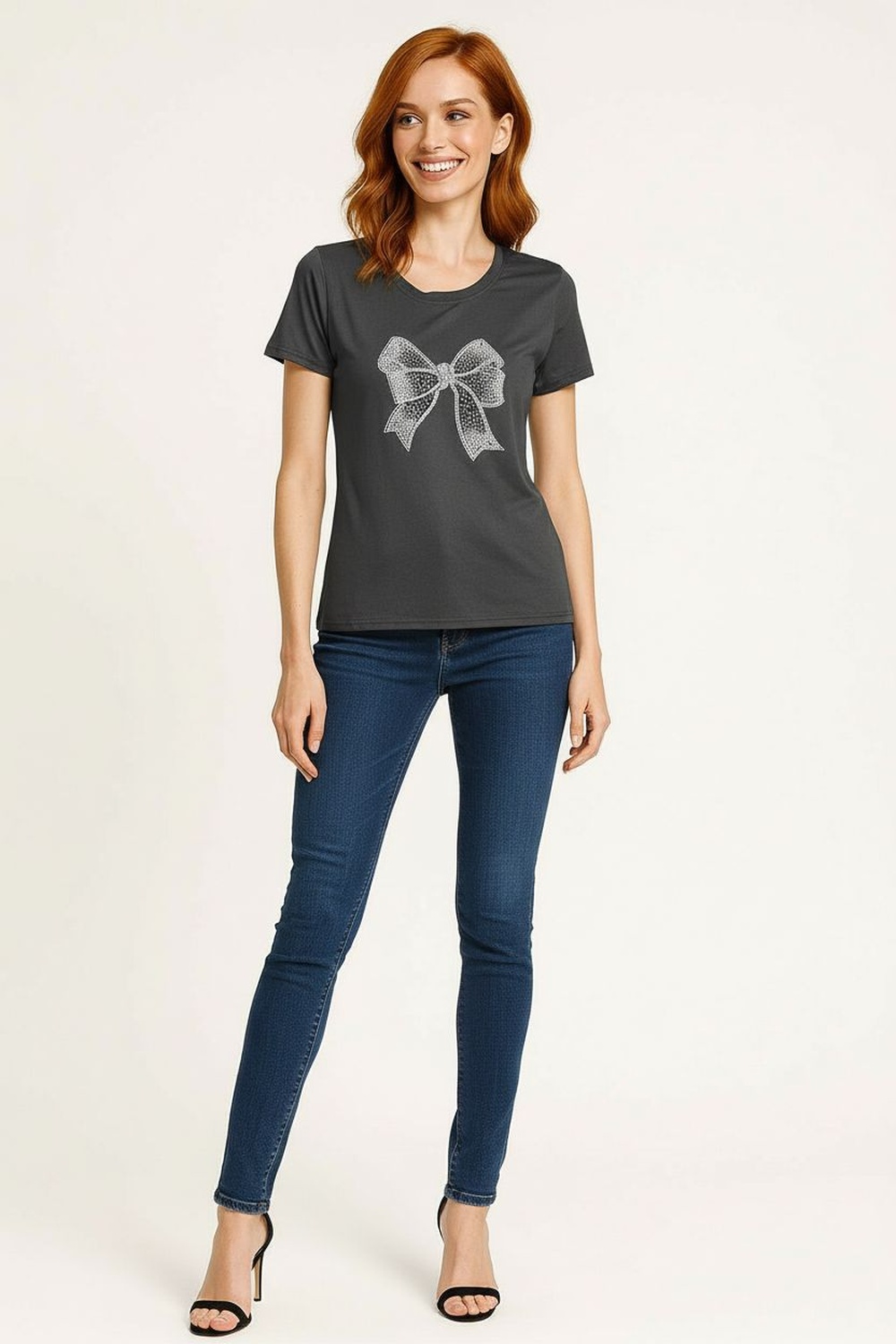 Playera de manga corta cuello redondo con aplicación decorativa al frente estructura ligera acabado suave