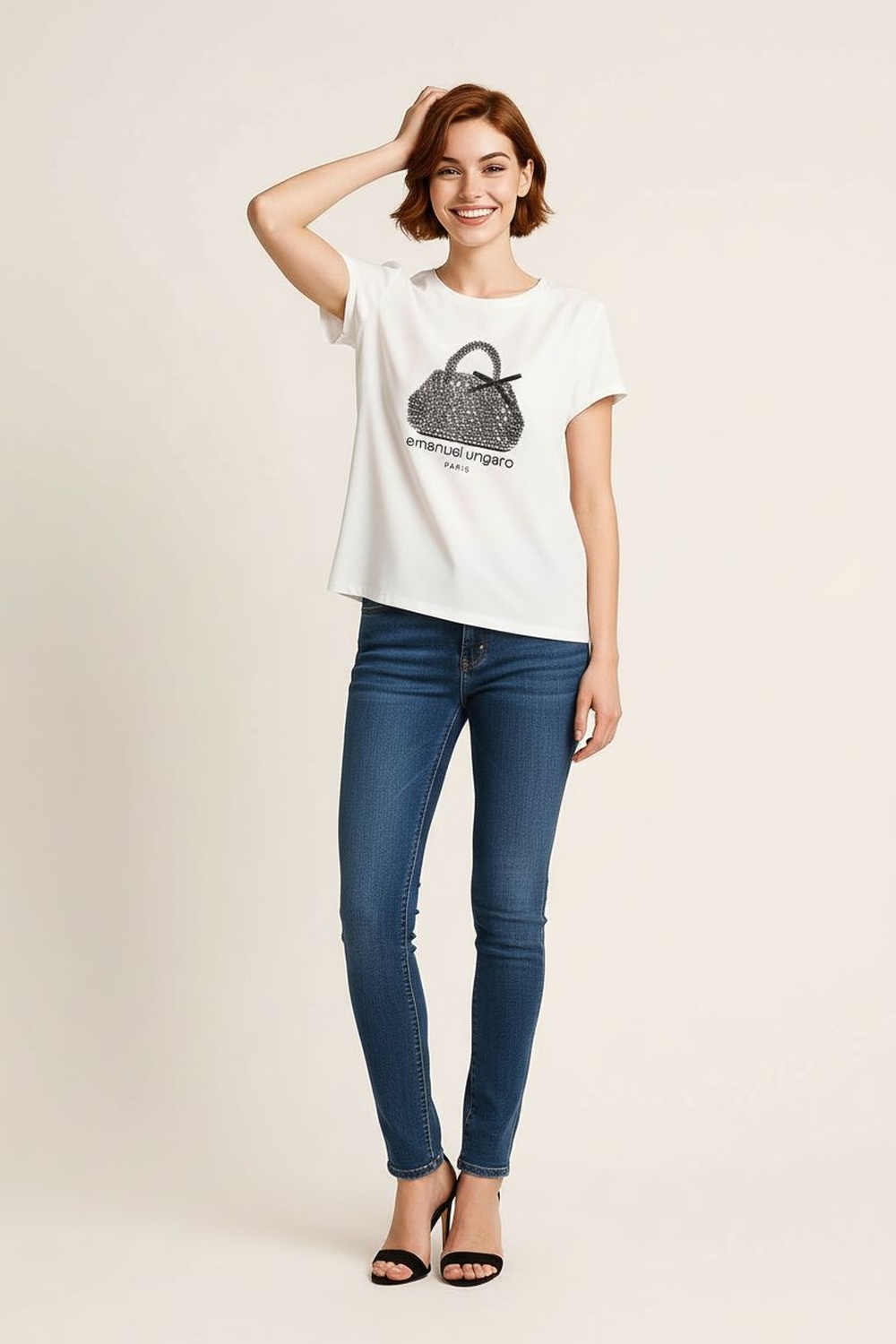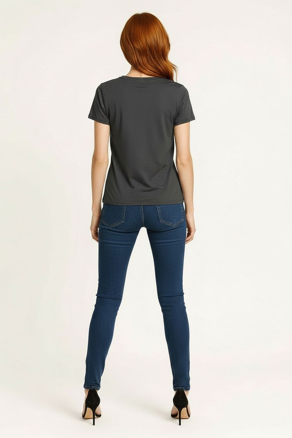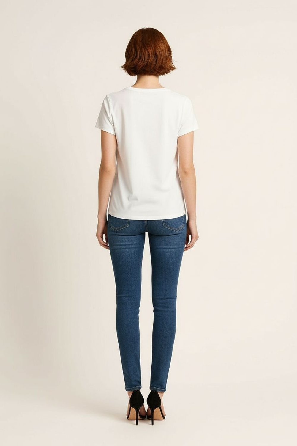 Playera de manga corta cuello redondo con aplicación decorativa al frente estructura ligera acabado suave