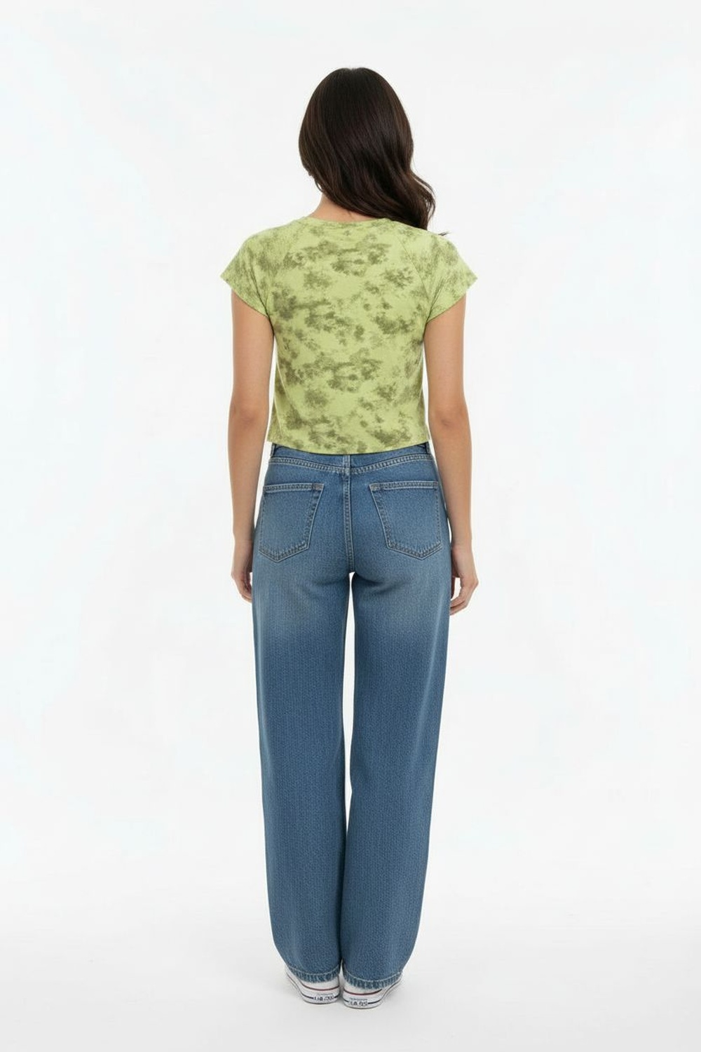 Playera rib con cuello redondo con acabado ondulado, manga corta, ajuste al cuerpo, largo regular, textura acanalada, terminados suaves