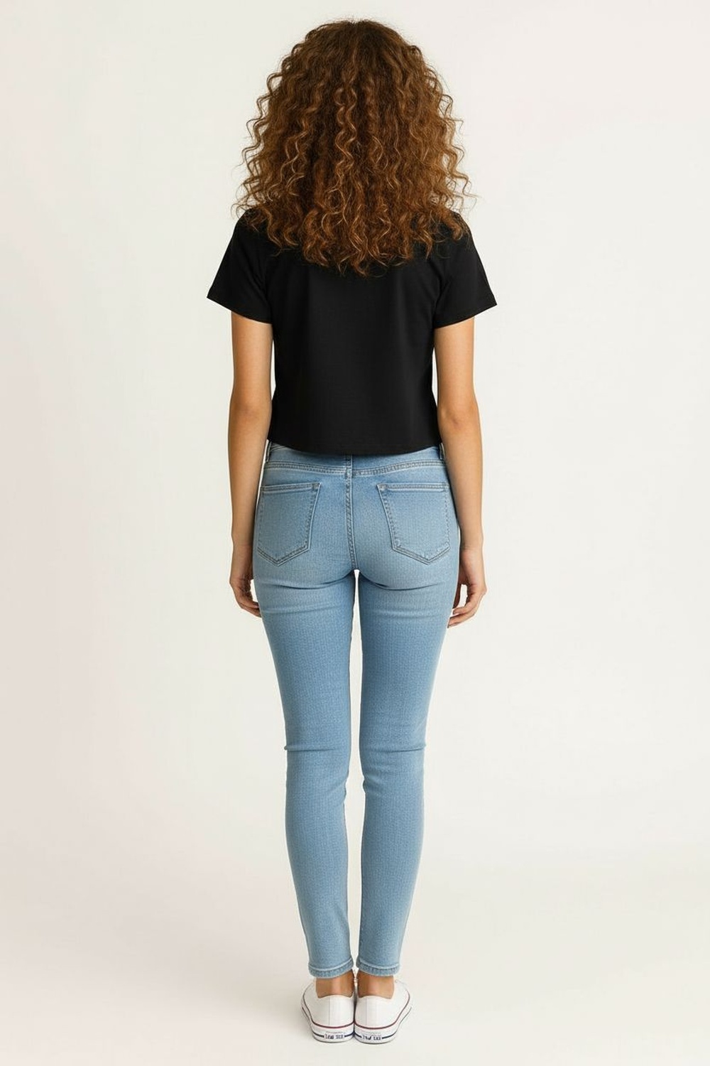 Playera corta de manga corta con escote redondeado, confección en tejido rib que aporta elasticidad y ajuste natural, silueta ceñida que define la forma, largo por arriba de la cintura que brinda un fit actual, terminaciones limpias en cuello y mangas