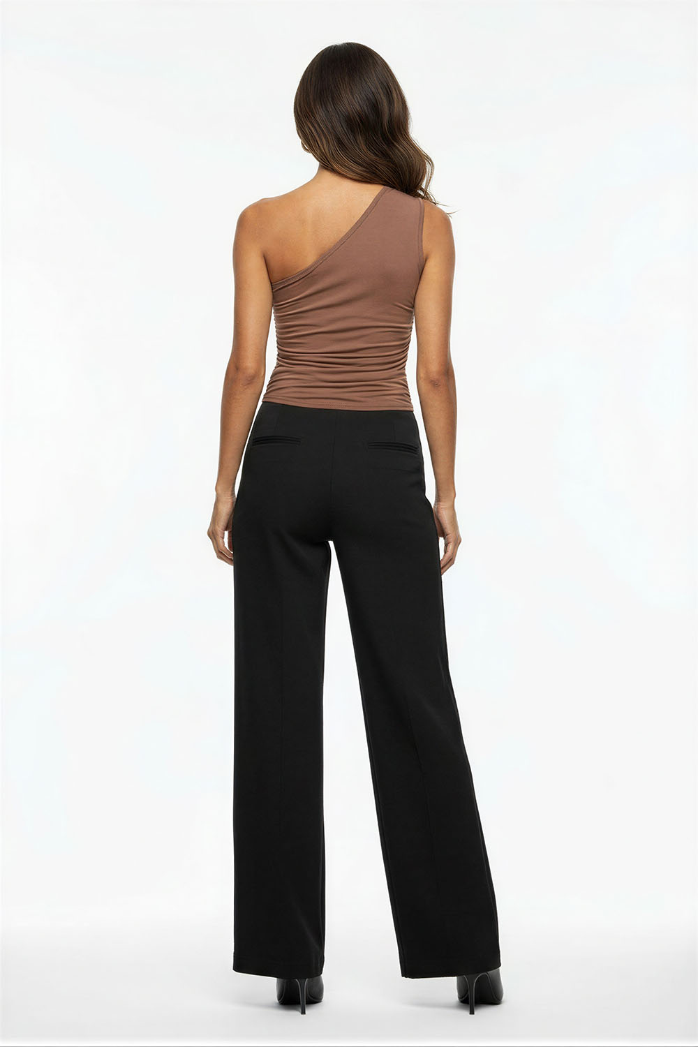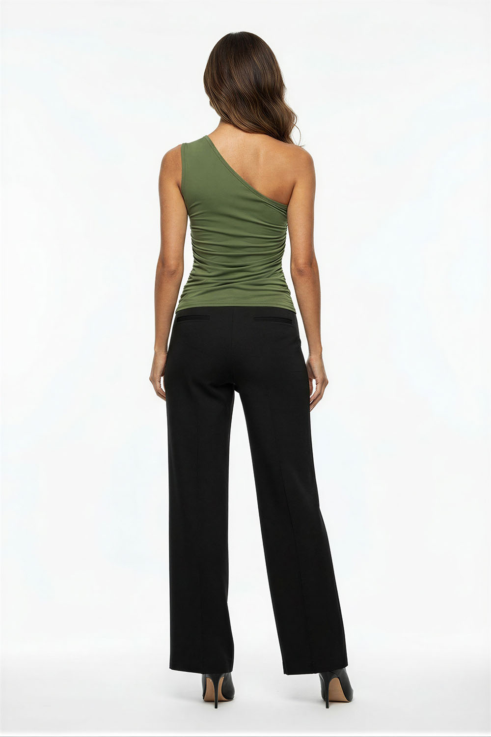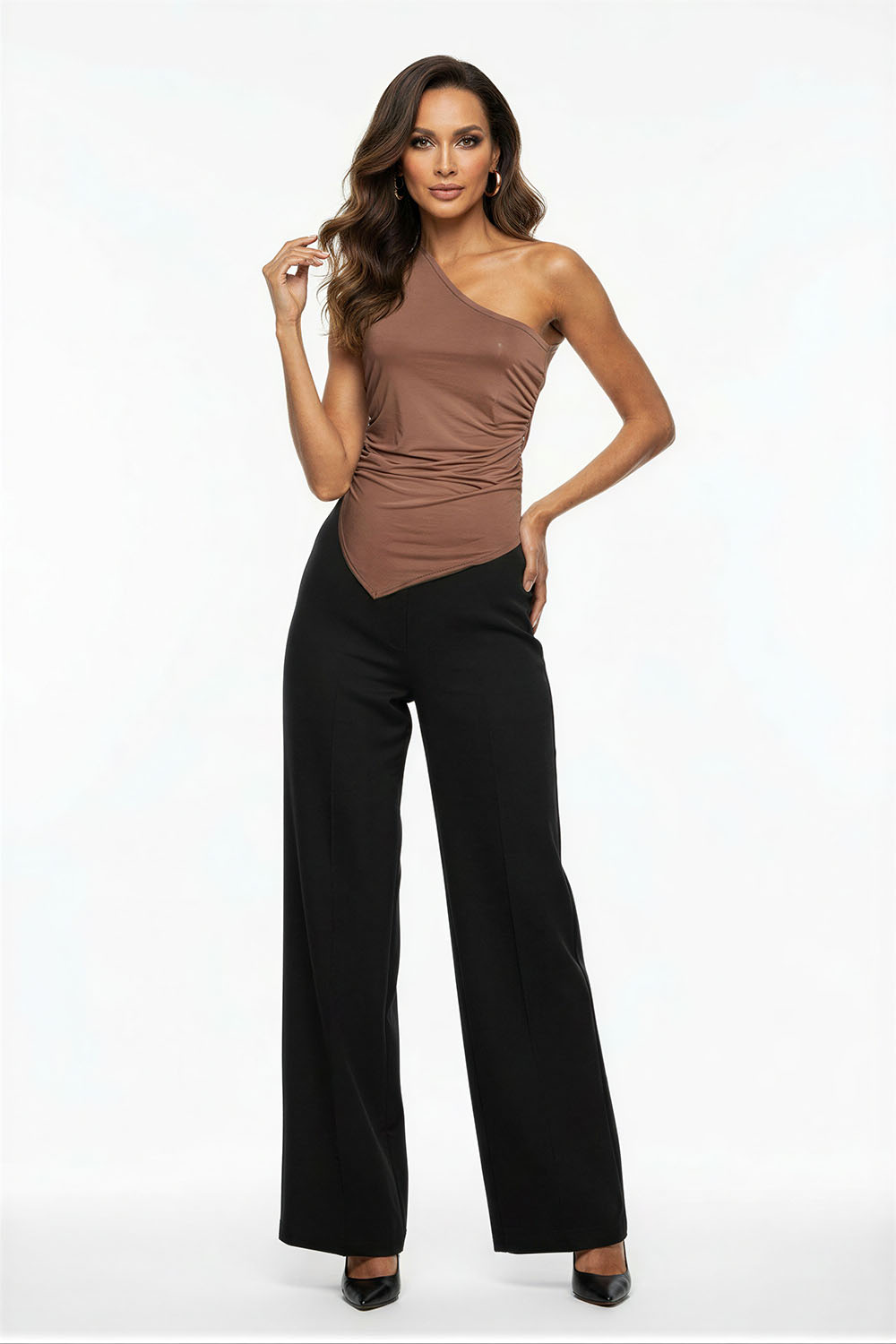 Playera de diseño asimétrico con un solo hombro que aporta un toque distintivo, ajuste entallado que se adapta al cuerpo, drapeado lateral que estiliza la silueta, confección en tejido elástico que brinda comodidad y libertad de movimiento