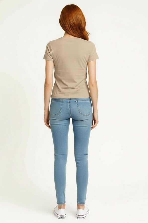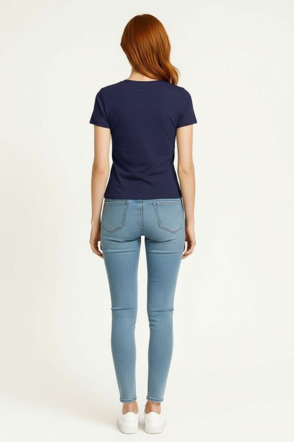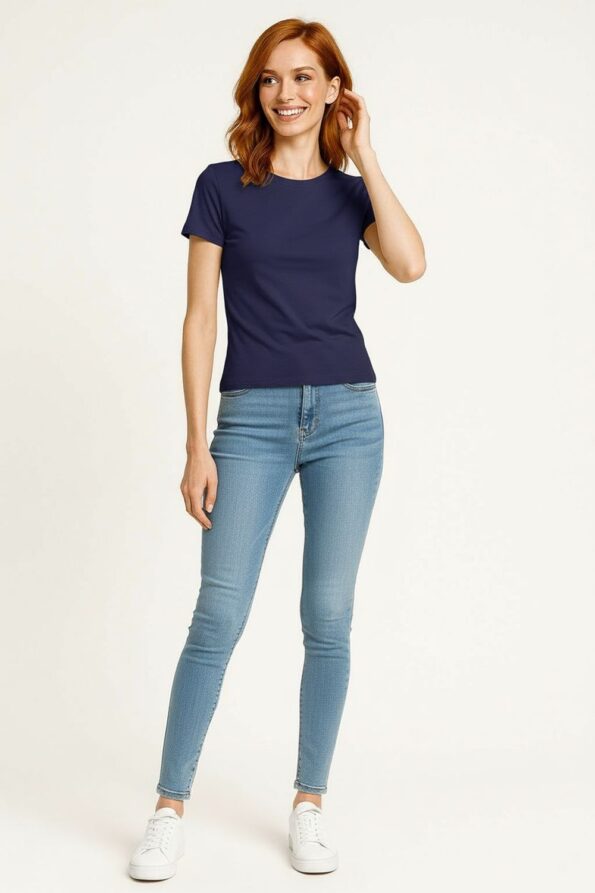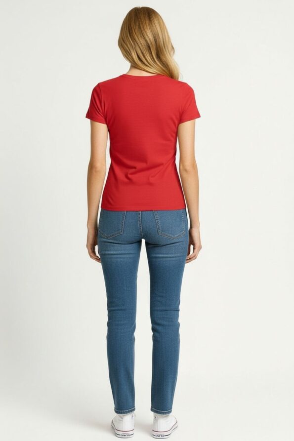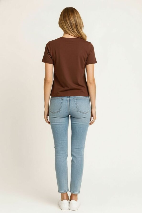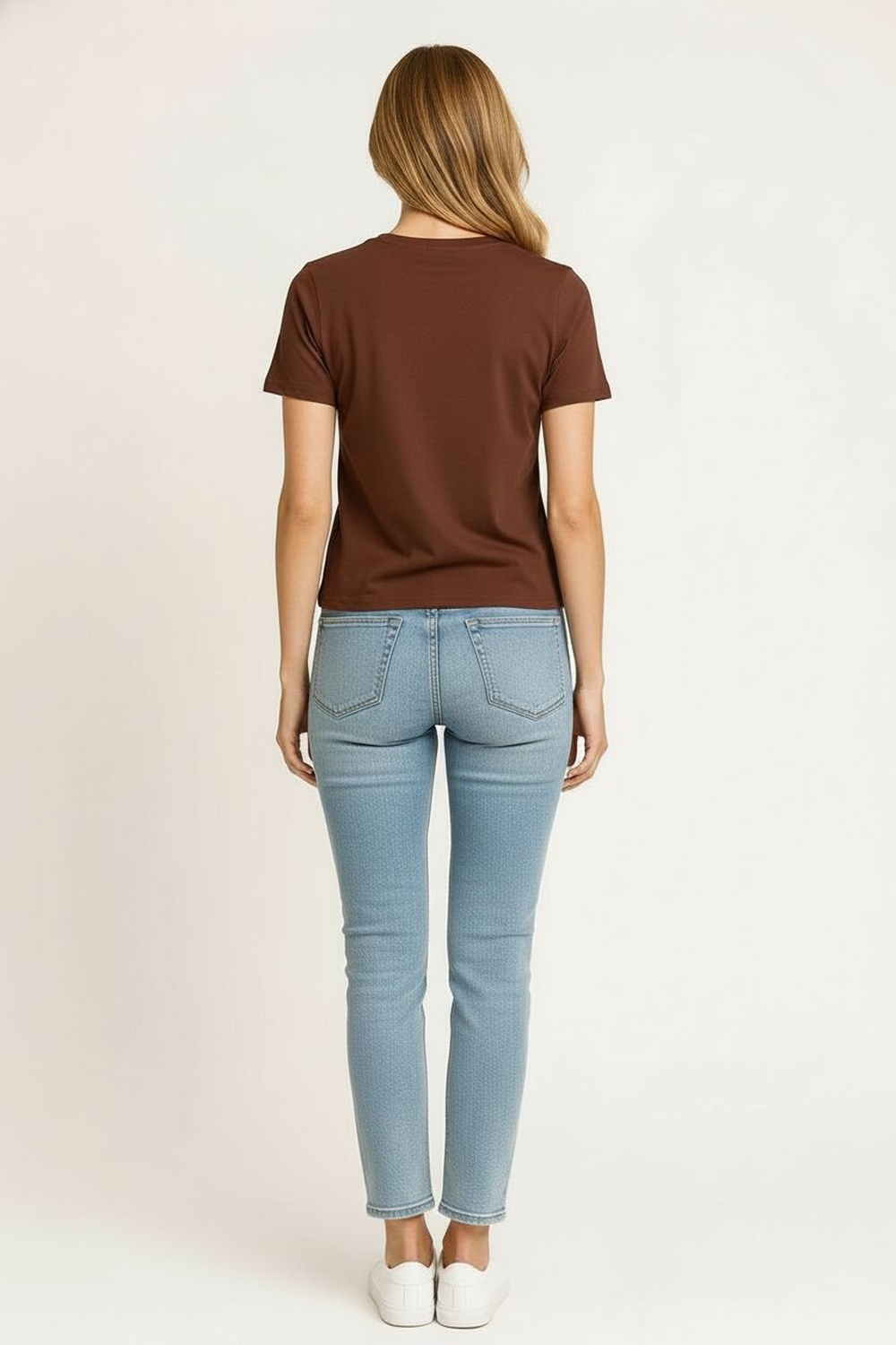 Playera de tejido rib con silueta desahujada que proporciona comodidad y frescura, escote redondo decorado con bies en contraste que resalta el diseño, manga corta con caída natural que favorece la movilidad, confección ligera y elástica que se adapta suavemente al cuerpo y realza la figura
