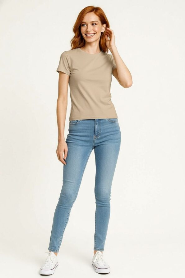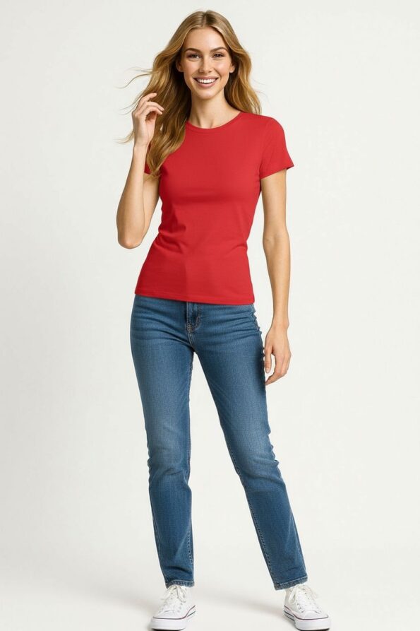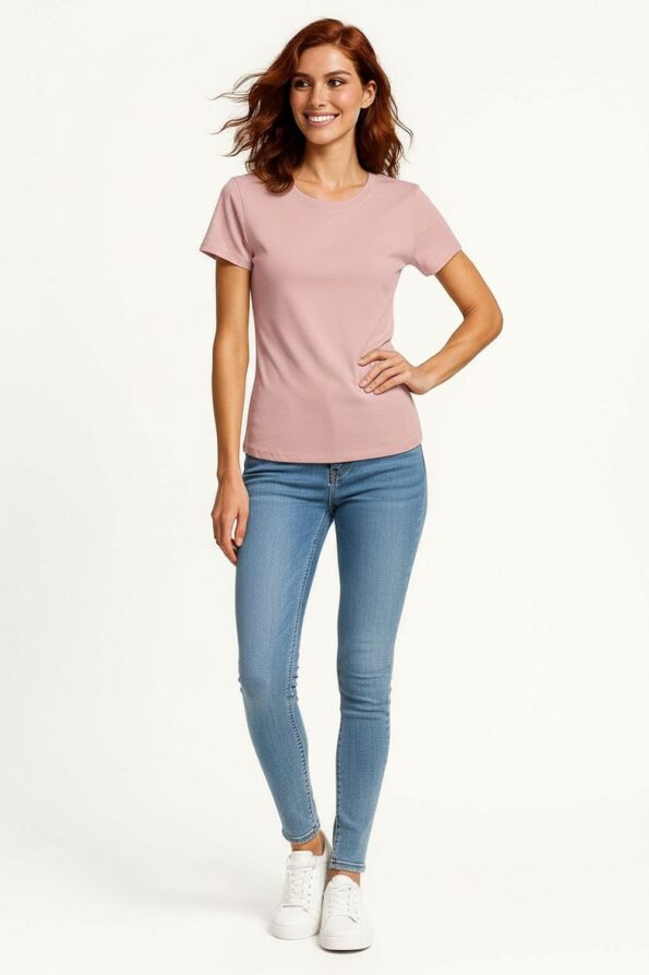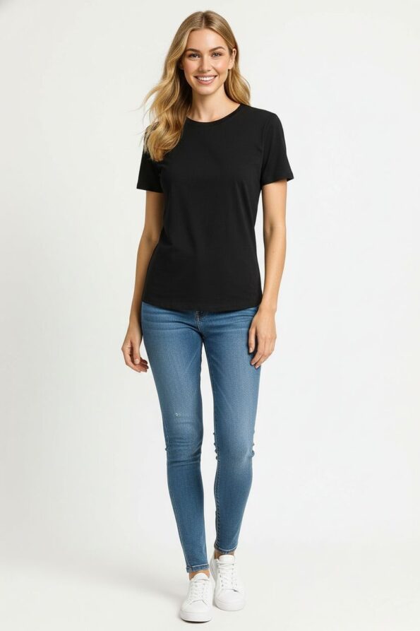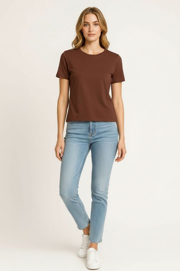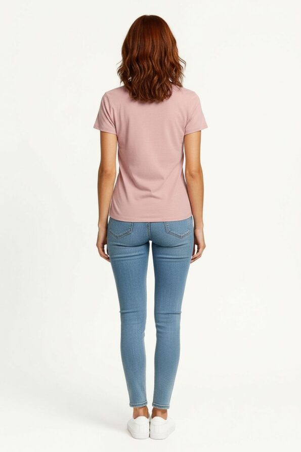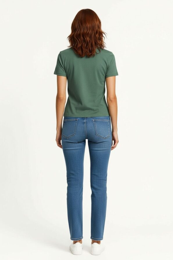 Playera de tejido rib con silueta desahujada que proporciona comodidad y frescura, escote redondo decorado con bies en contraste que resalta el diseño, manga corta con caída natural que favorece la movilidad, confección ligera y elástica que se adapta suavemente al cuerpo y realza la figura