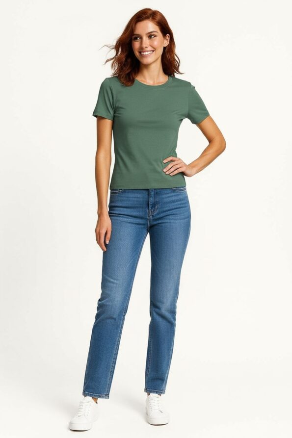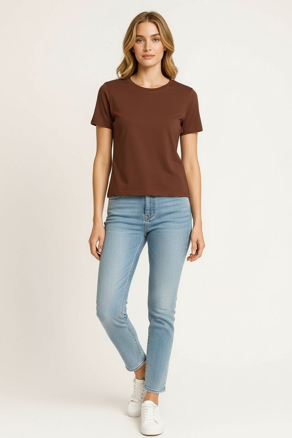 Playera de manga corta con cuello redondo clásico que ofrece un diseño atemporal, confeccionada en tejido acanalado de tacto suave que brinda comodidad, corte recto que se adapta fácilmente al cuerpo, acabado limpio que permite combinarla con distintos estilos casuales de temporada