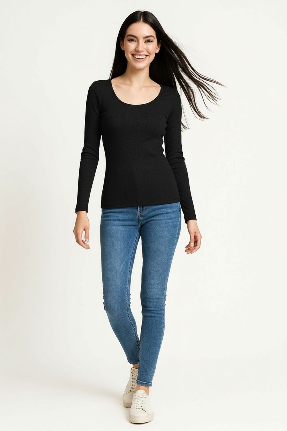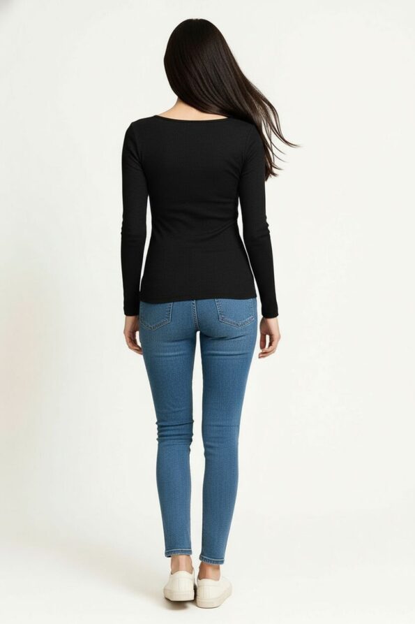 Playera de manga larga confeccionada con doble capa de tela que aporta firmeza y estructura, escote redondo que brinda un diseño clásico y versátil, ajuste regular que se adapta al contorno del cuerpo sin limitar el movimiento, tejido suave al tacto que ofrece comodidad durante el uso diario y un acabado limpio que resalta su confección cuidada