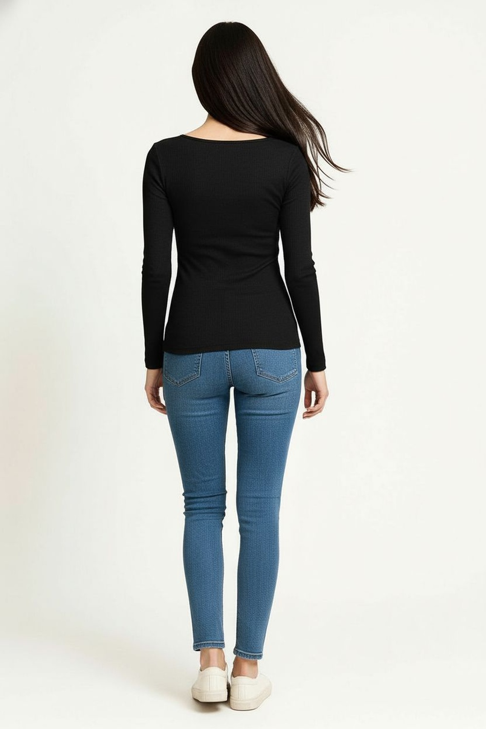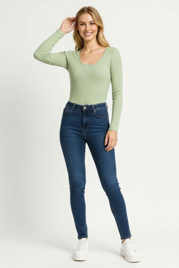 Playera crop confeccionada en tejido rib de grosor medio que brinda estructura y suavidad, diseño de manga larga con escote asimétrico decorado con aplicación metálica que aporta un toque moderno, pretina ajustada que define la cintura y favorece la figura, confección elástica que ofrece libertad de movimiento y mantiene su forma tras cada uso