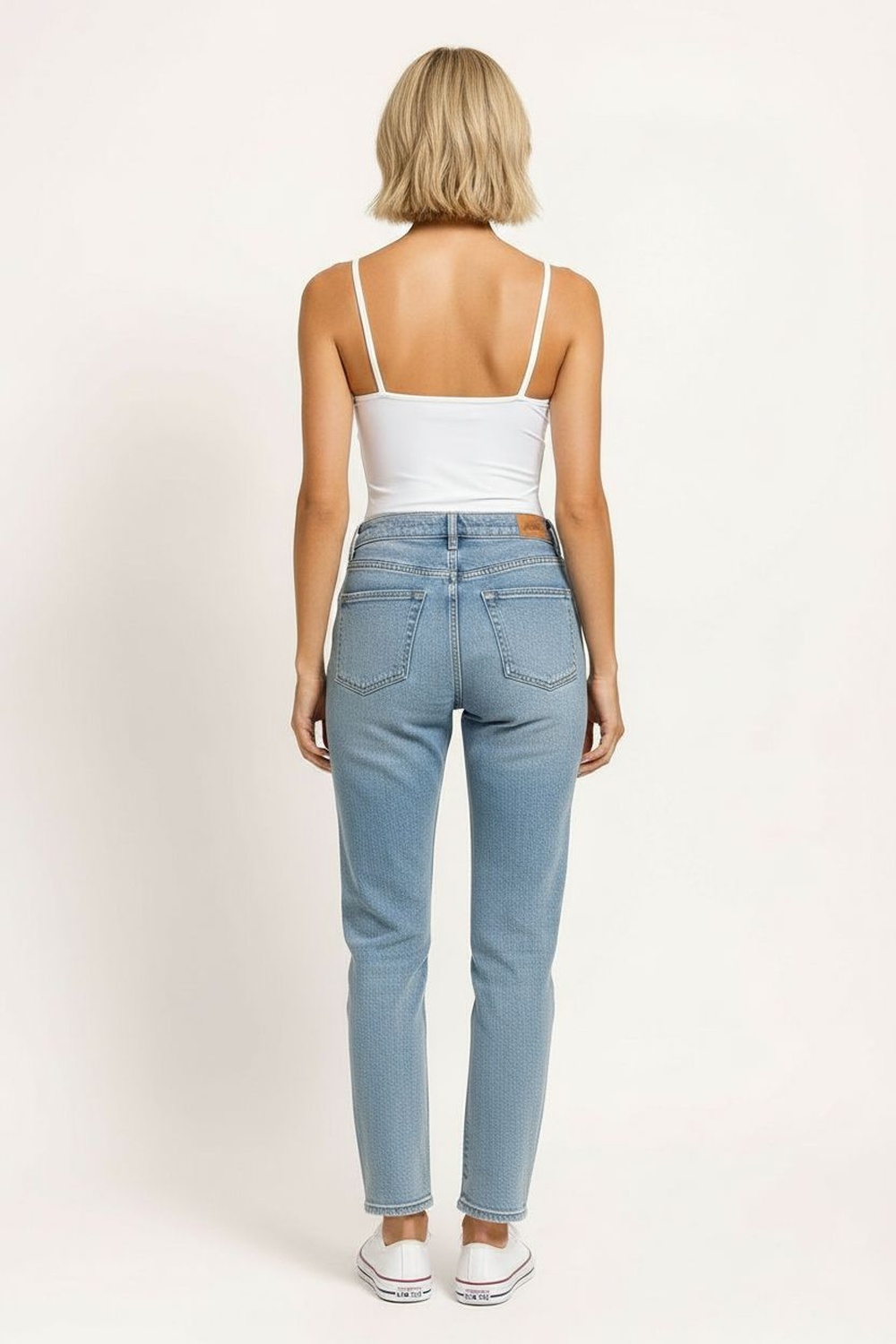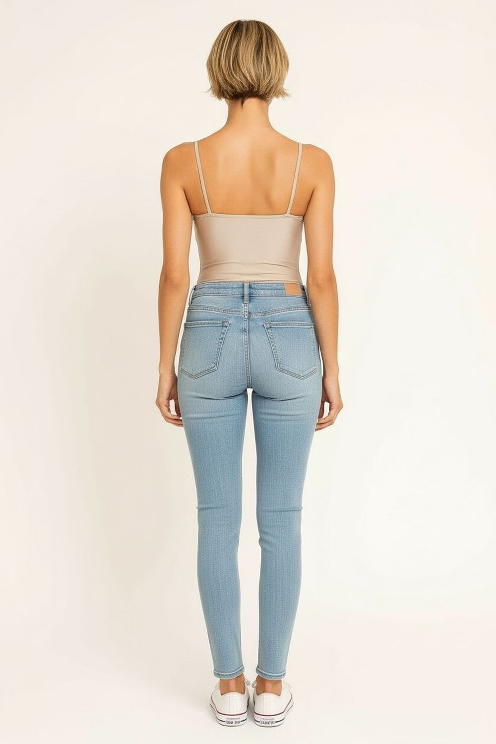 Short de tiro alto con pretina firme y cierre frontal con botón metálico que brinda ajuste seguro, diseño clásico de cinco bolsillos funcionales que aporta practicidad, corte recto que favorece proporción equilibrada, confección en mezclilla resistente de textura firme que mantiene su forma durante el uso diario