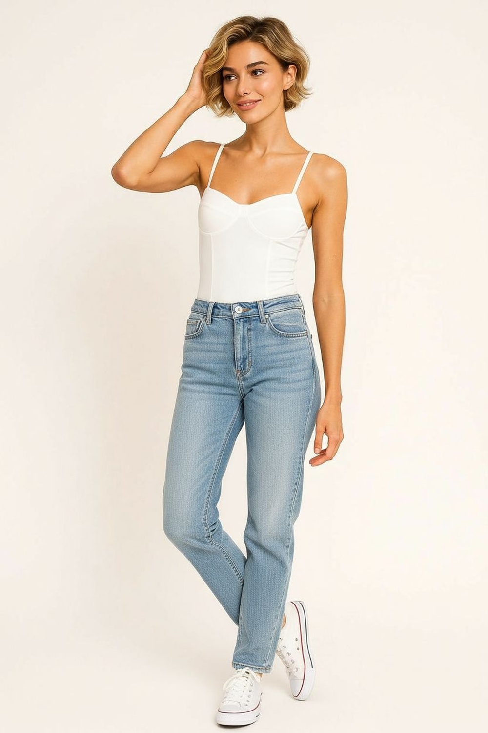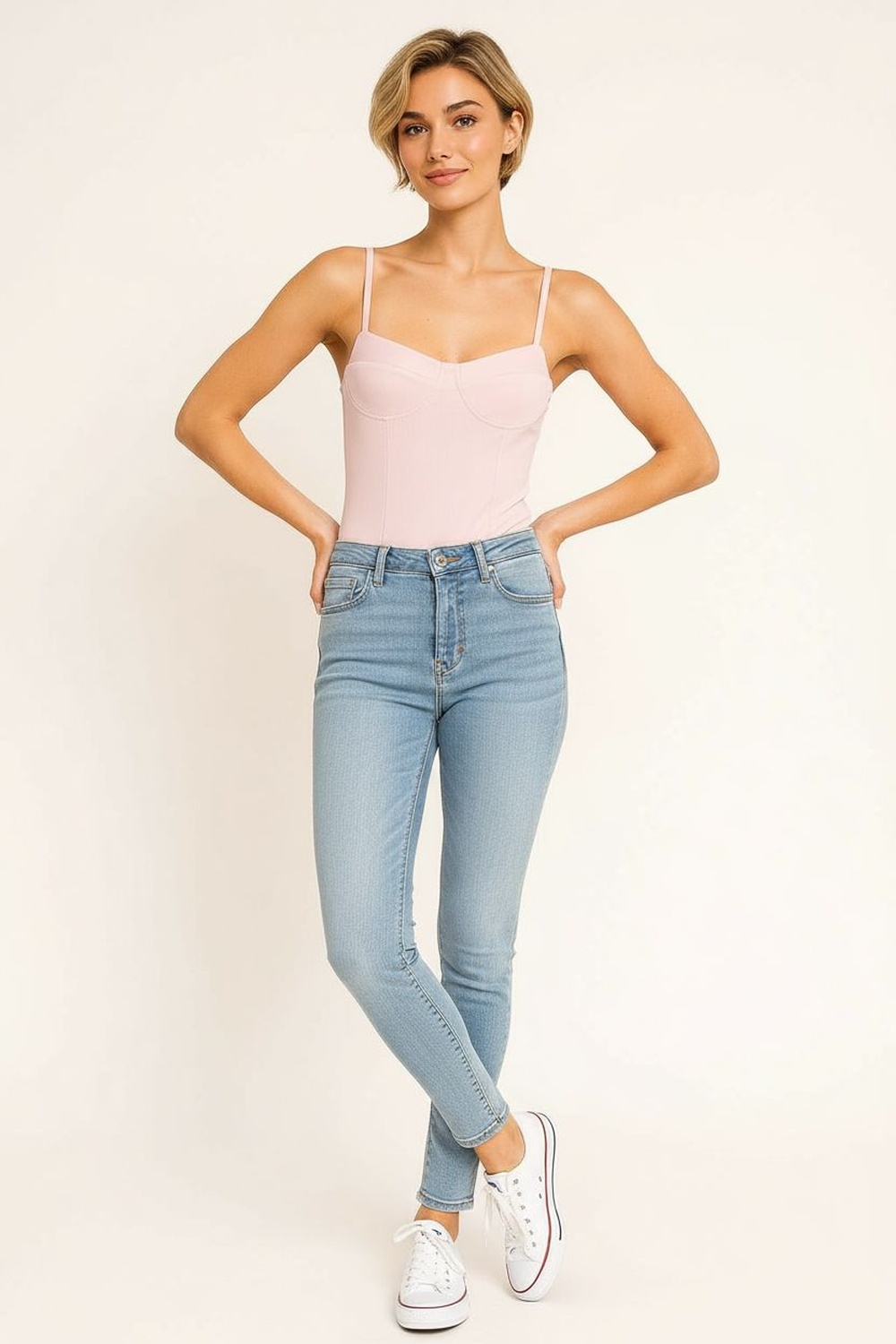 Body de tirantes con escote en v ajuste al cuerpo estructura elástica diseño con copas marcadas acabado liso