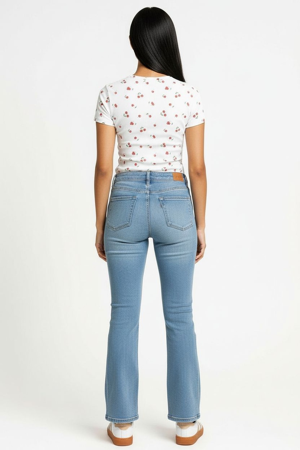 Playera corta de cuello redondo con manga corta ajustada que realza la figura, detalle bordado frontal que aporta un toque moderno y divertido, confeccionada en tejido de punto suave con excelente elasticidad y recuperación