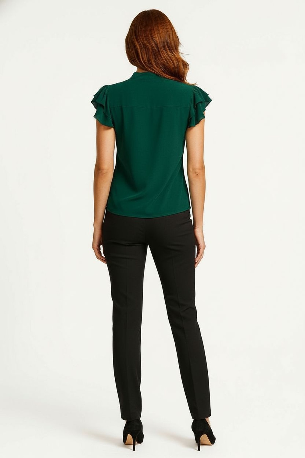 Playera con efecto medio brilloso que aporta un estilo básico con acabado formal, confeccionada en tela ligera con sutil luminosidad que realza el diseño, cuello redondo clásico que ofrece versatilidad para diferentes ocasiones, manga corta tipo farol que añade un detalle femenino y moderno, ideal para atuendos casuales y formales de temporada, una prenda versátil que combina comodidad con un toque elegante