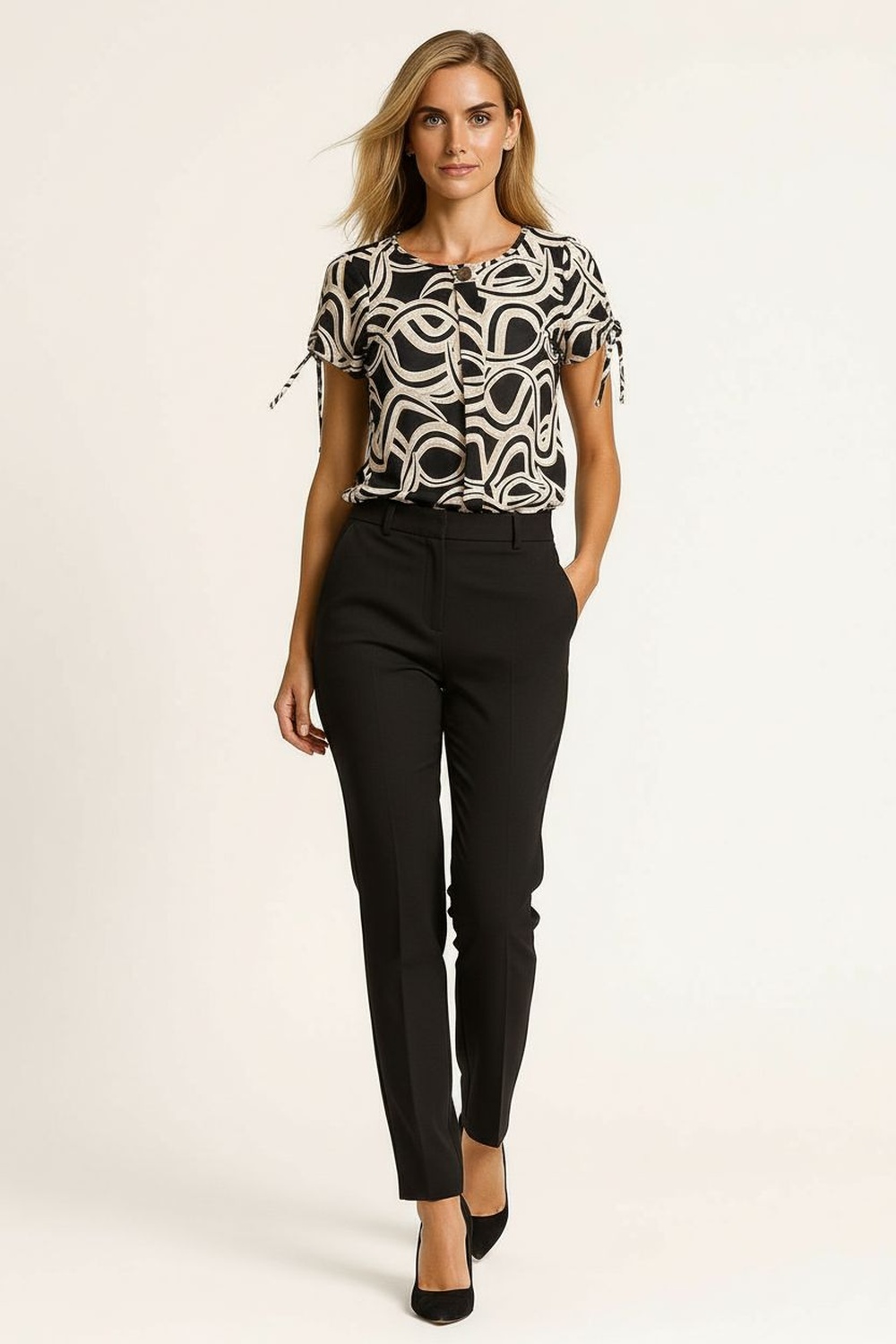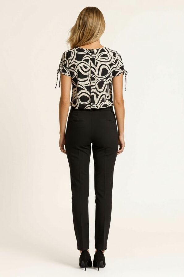 Playera de manga corta con detalle de jareta ajustable que permite personalizar el largo y el estilo, escote redondo con abertura y botón decorativo que aporta un toque moderno, corte recto que favorece la silueta y brinda comodidad, confección en tela ligera y suave que asegura frescura y practicidad en su uso diario