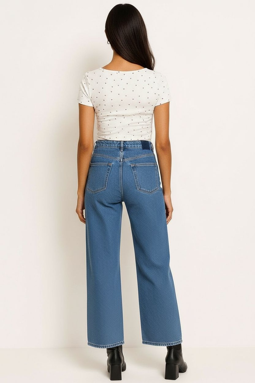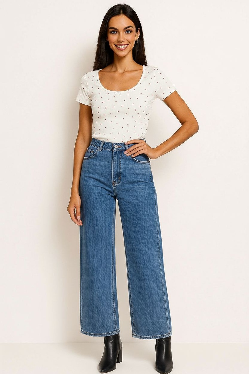 Playera de manga corta con silueta ligeramente entallada que define la figura, escote redondo amplio con acabado delicado, tejido suave con textura ligera que brinda comodidad prolongada, diseño repetido con figuras pequeñas que aportan detalle discreto y atractivo visual, confección pensada para acompañar actividades cotidianas con libertad de movimiento