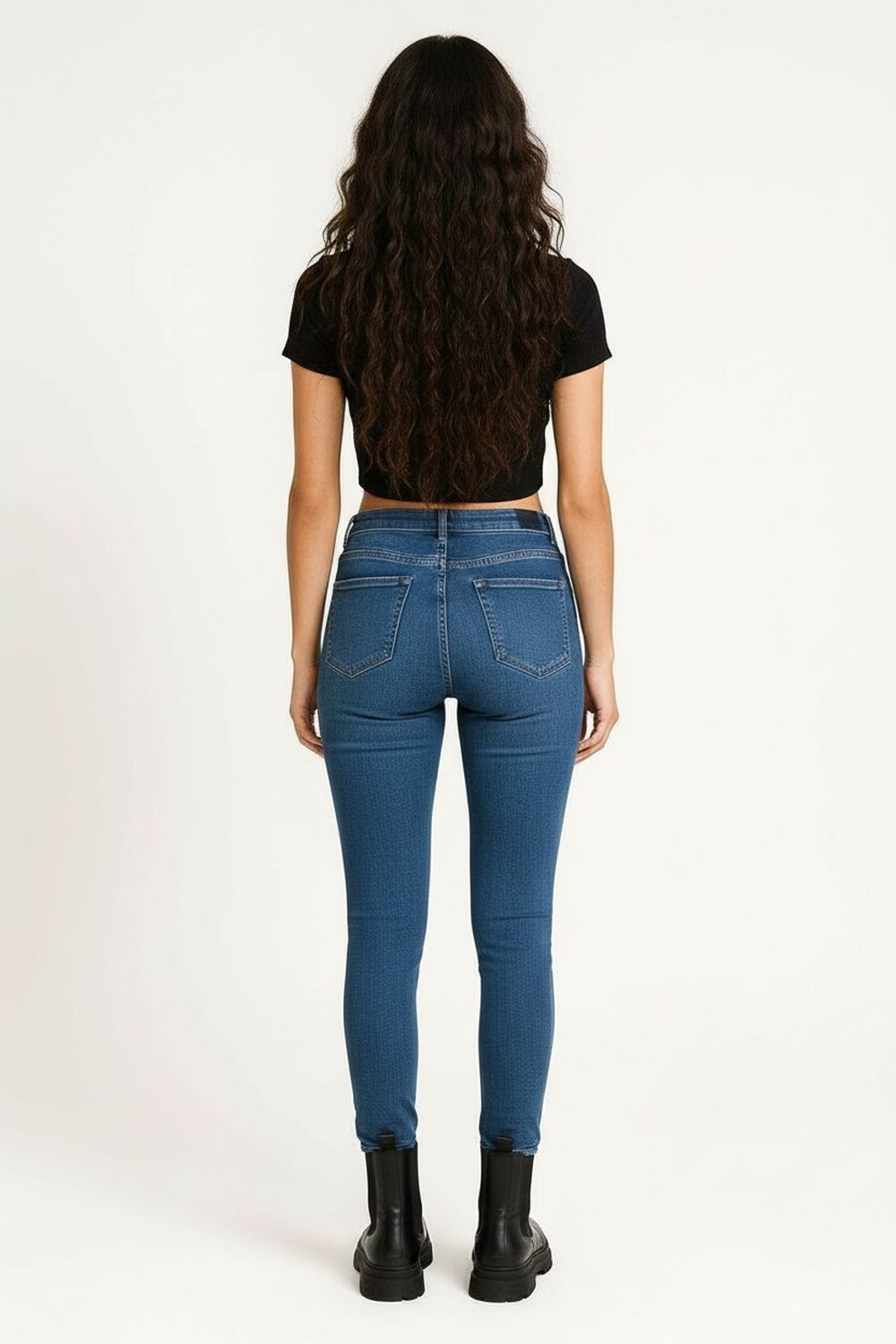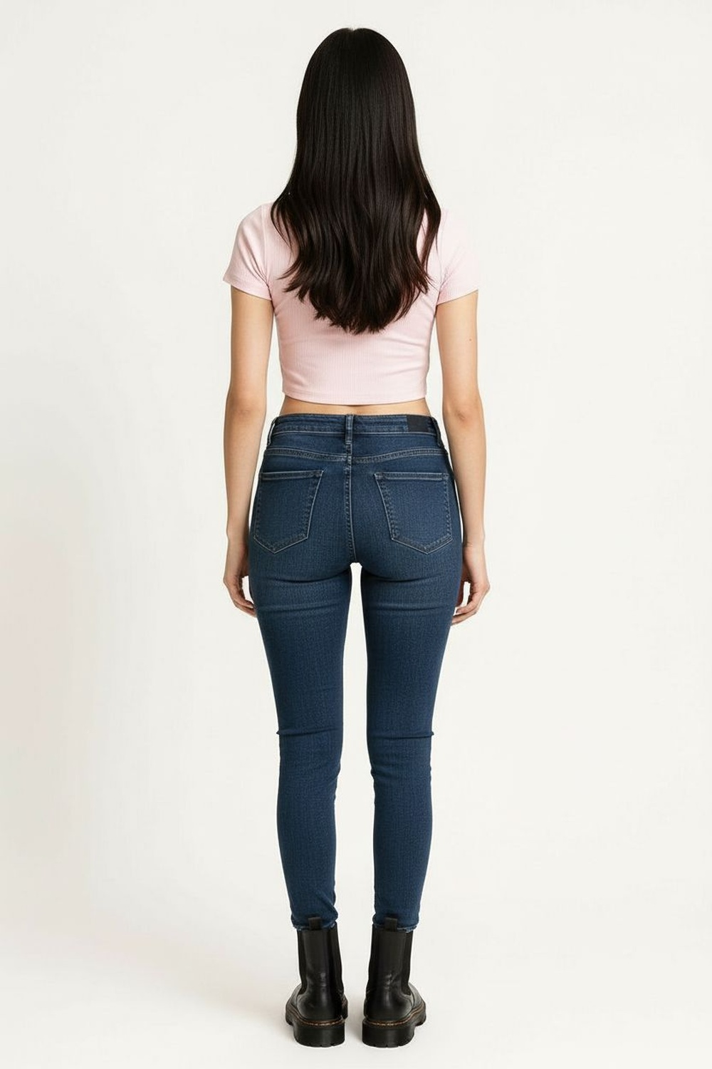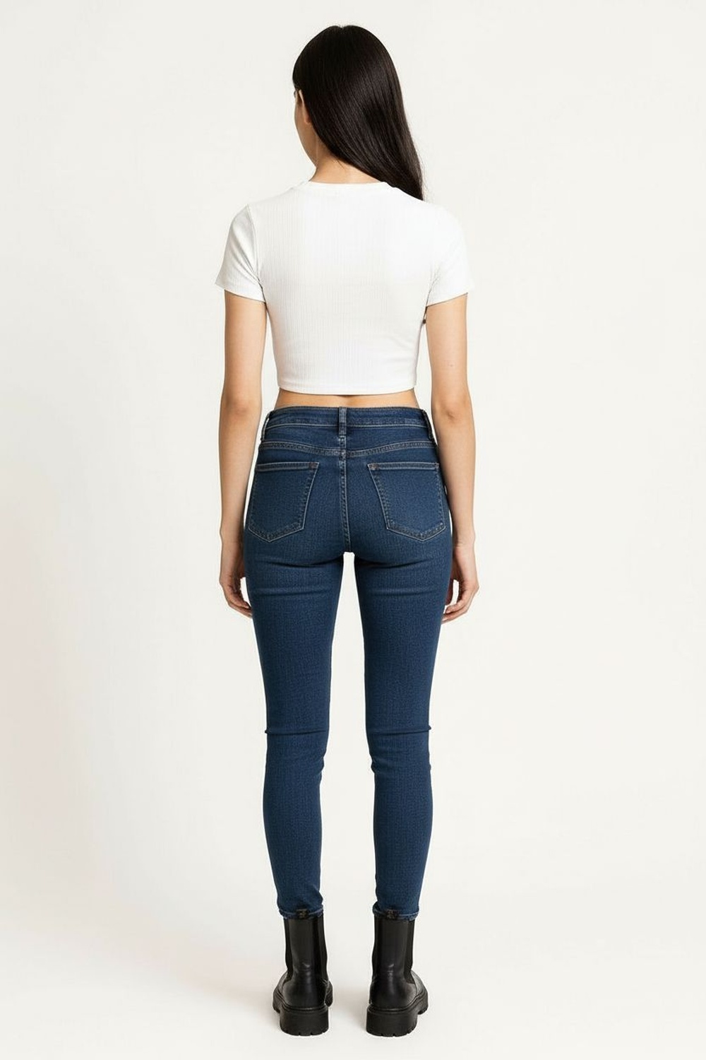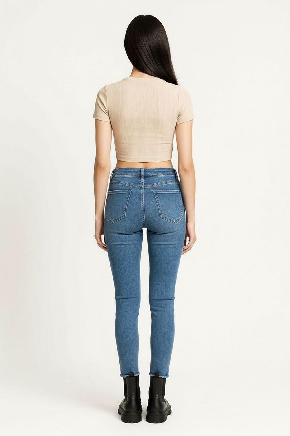Playera corta de manga corta con cuello redondo clásico, silueta ajustada que resalta la forma natural, largo por encima de la cintura, confección en tejido elástico de tacto suave y ligero