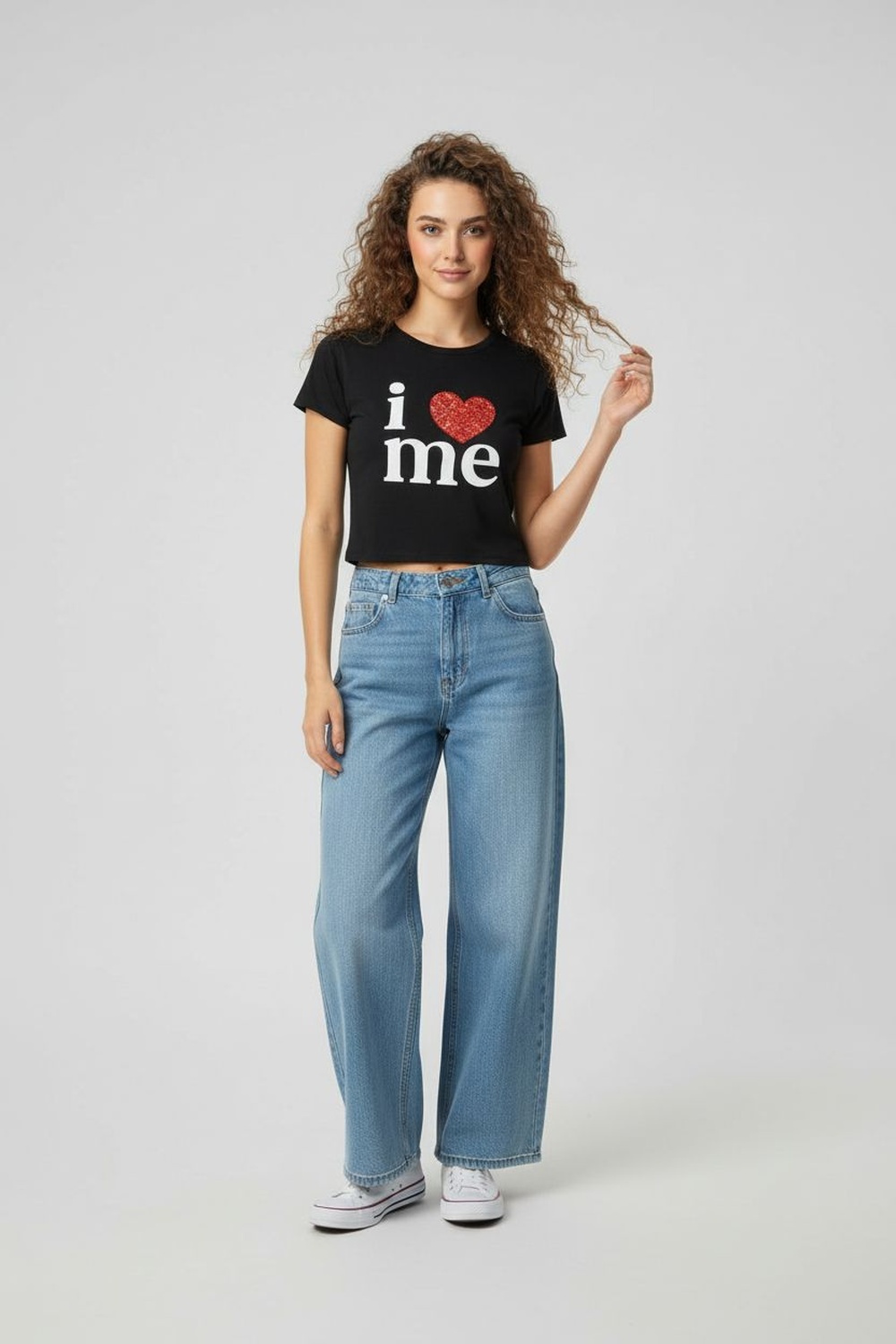 Playera corta de manga corta con escote redondo, ajuste al cuerpo, gráfico frontal, terminaciones limpias, confección en tejido suave, estructura ligera