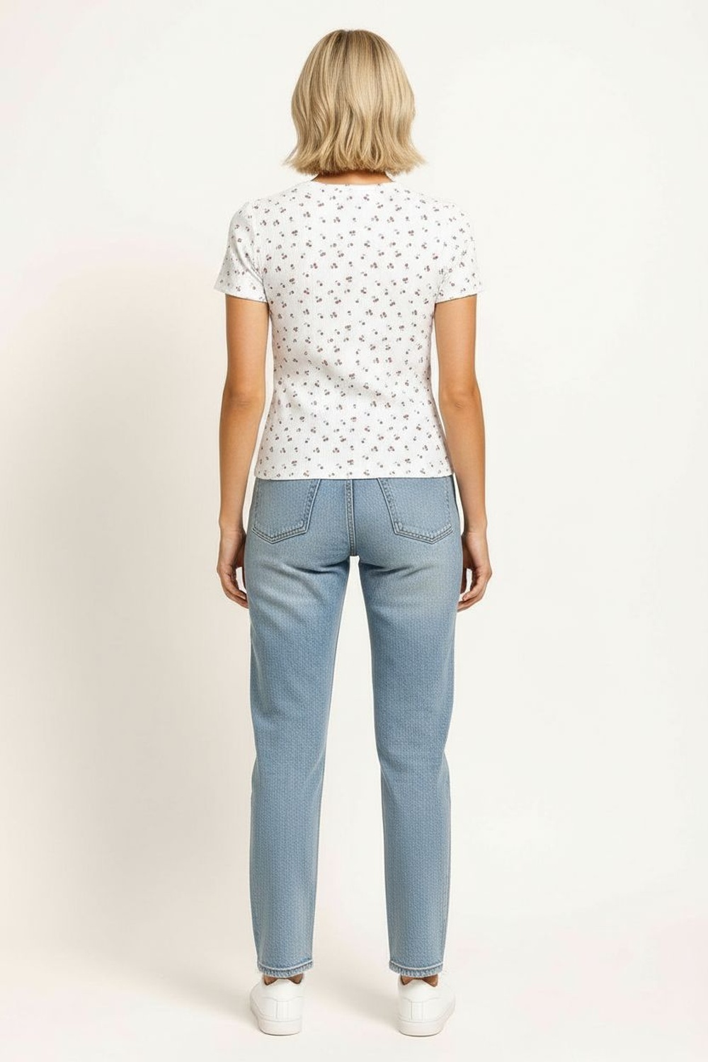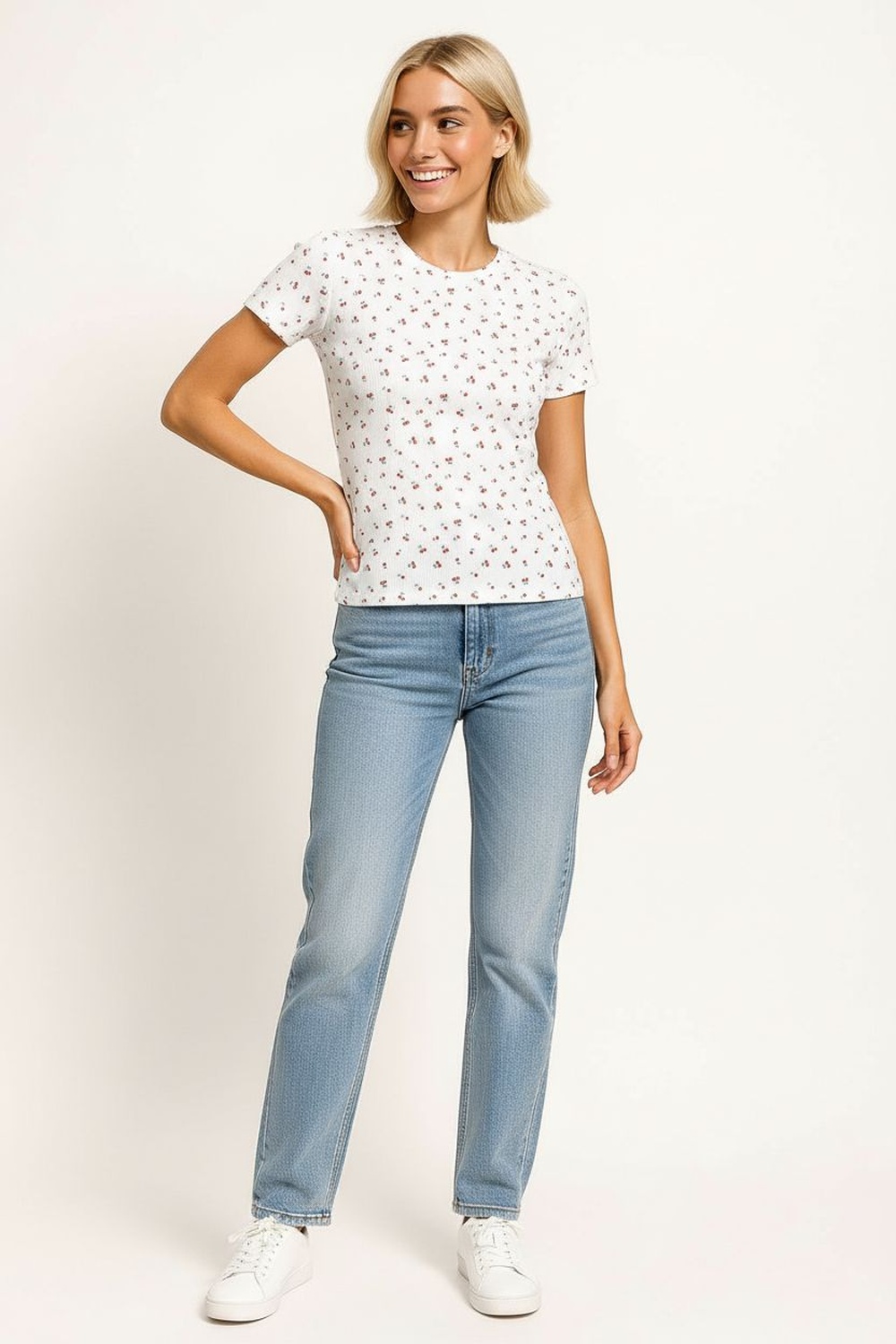 Playera de manga corta confeccionada en tejido rib que se ajusta cómodamente al cuerpo, escote redondo clásico que realza la simplicidad del diseño, silueta corta que favorece un look moderno y juvenil, confección en tela ligera y fresca que brinda libertad de movimiento y comodidad en cada uso