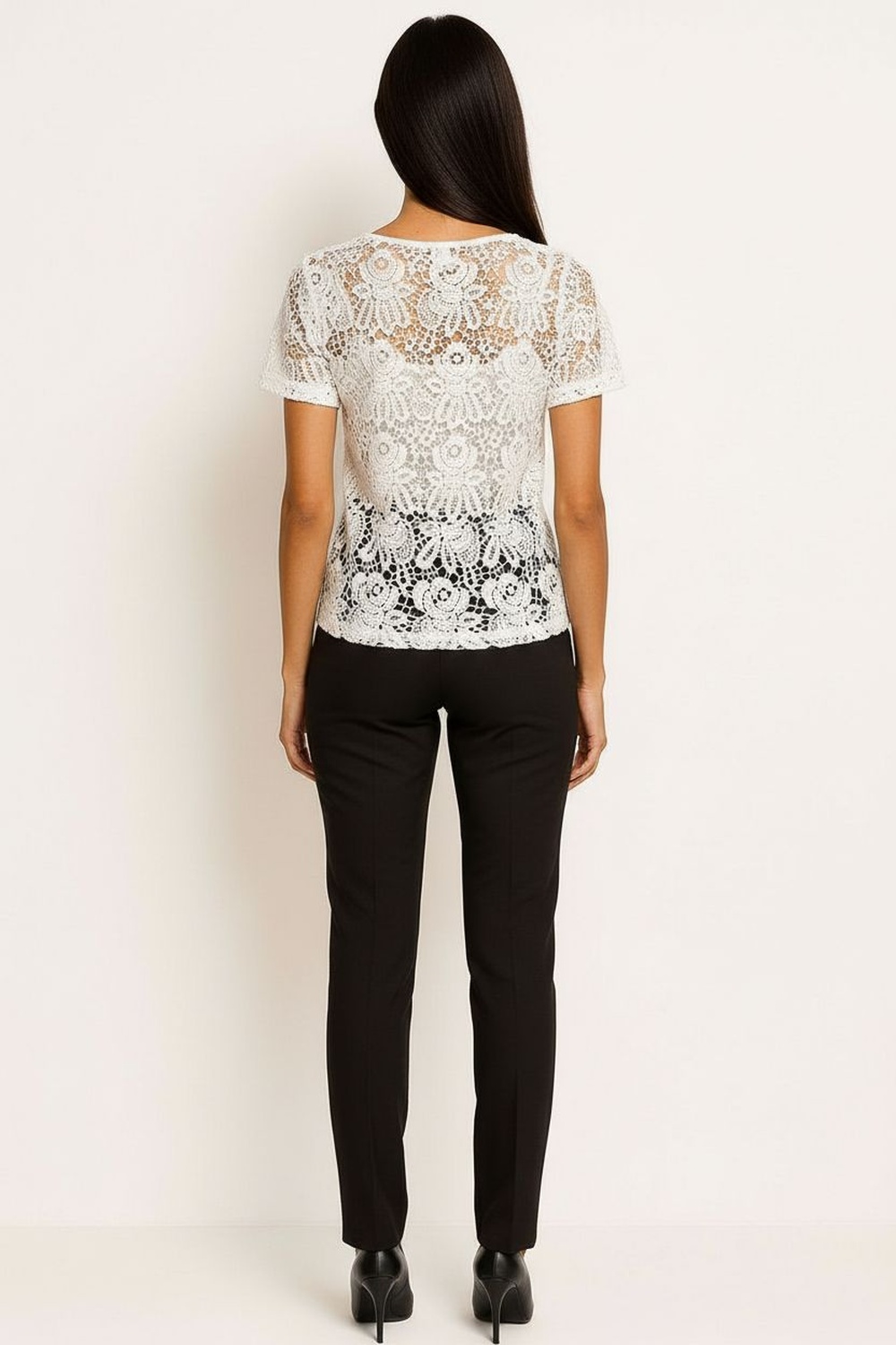 Playera, tejido crochet, acabado calado, corte cómodo, terminaciones limpias