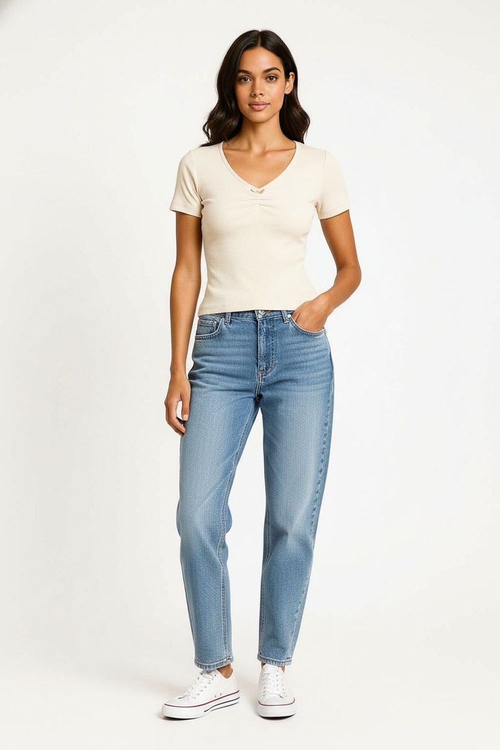 PLAYERA ESCOTE V CON DETALLE FRONTAL